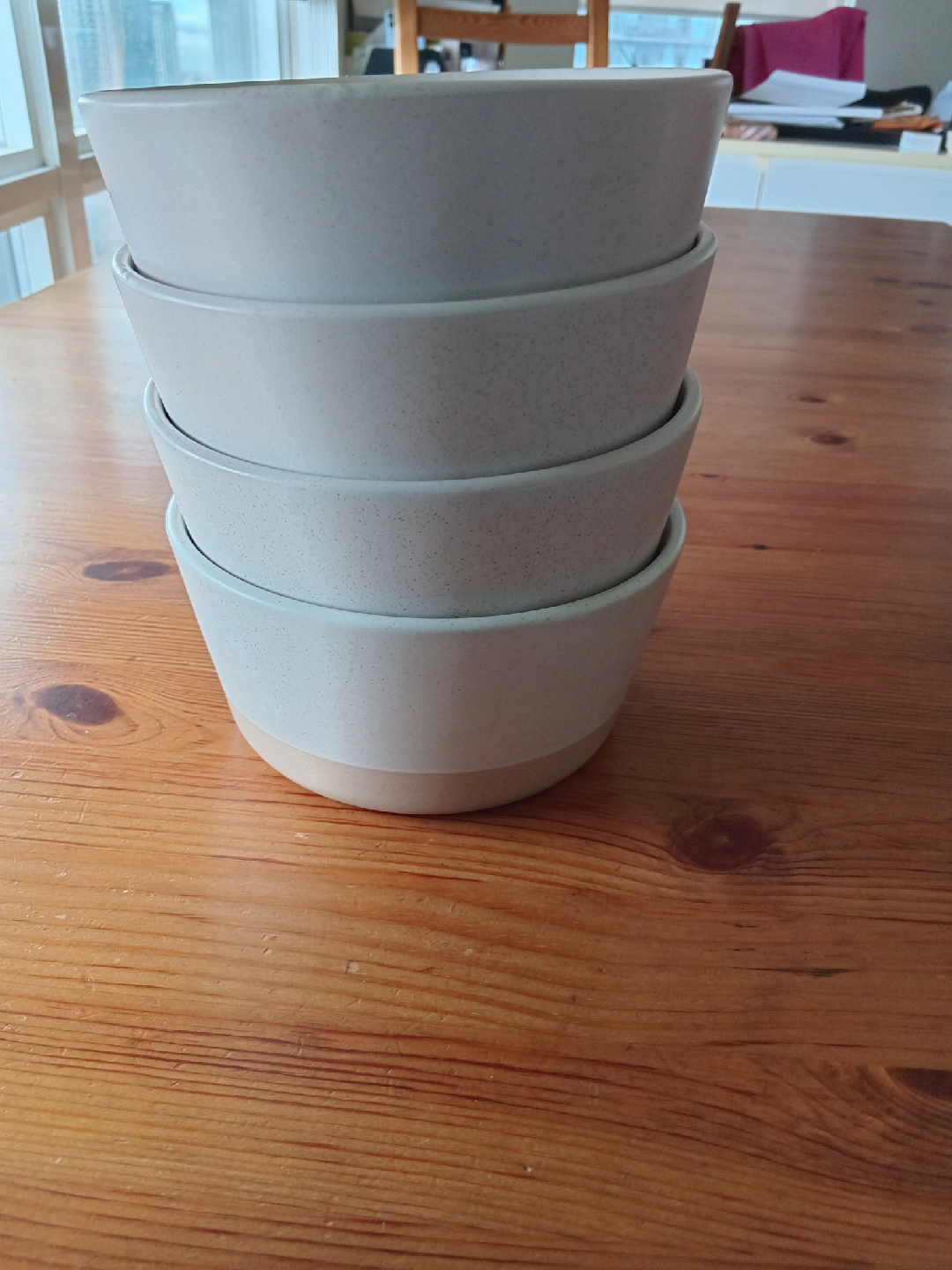 277Selling a set of four ceramic stone bowls. They have a speckled pattern and a neutral colour that would suit any kitchen. Perfect for soups, salads, or snacks!