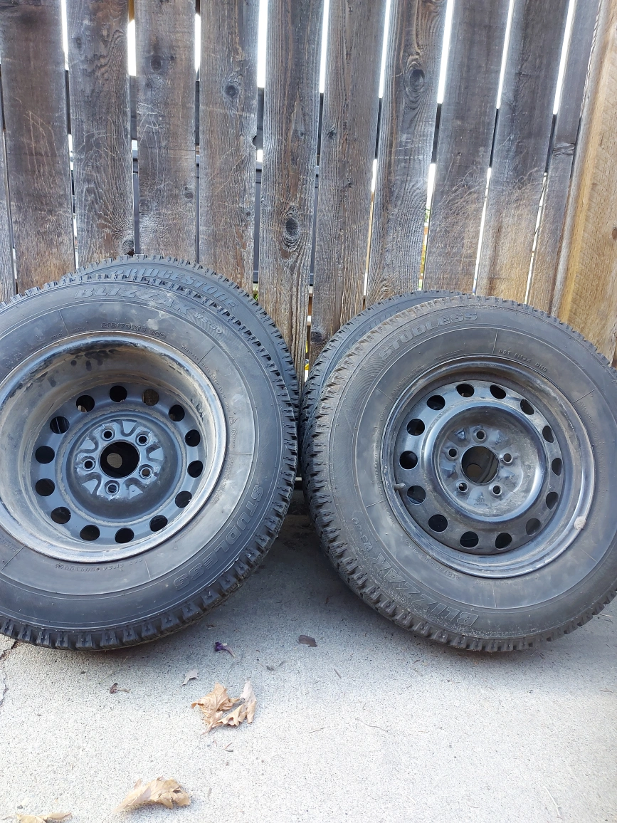 Selling a set of four Blizzak studded winter tires. They're in good condition and ready to keep you safe on the road this winter,215/70R15 ws-50. text Kaye 780-994-9121 rims included.150 per tire.