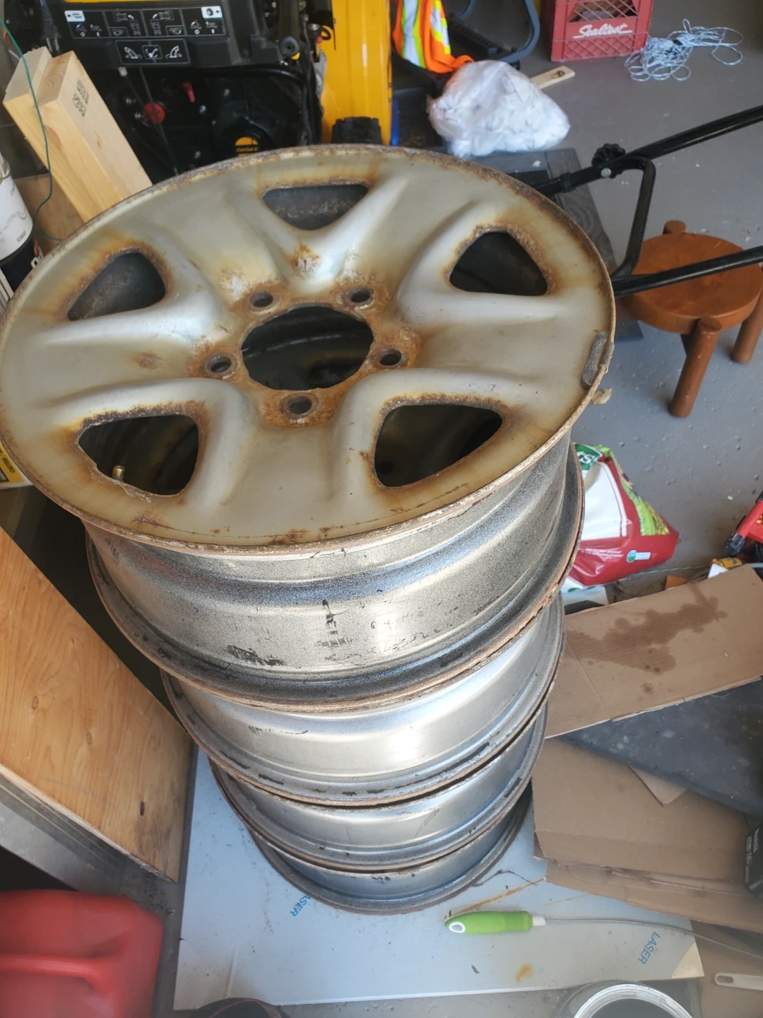 9Selling a set of four used steel rims. They show some signs of wear and rust, as you can see in the photos. They come with a container of lug nuts. Perfect for a spare set or winter tires! Selling for $300.00. PRICE is very FIRM! Smoke free, Pet Friendly home π‘πΆ
