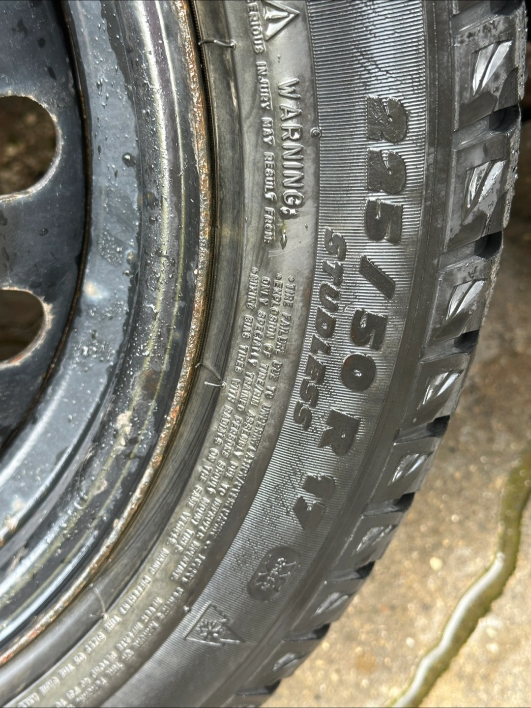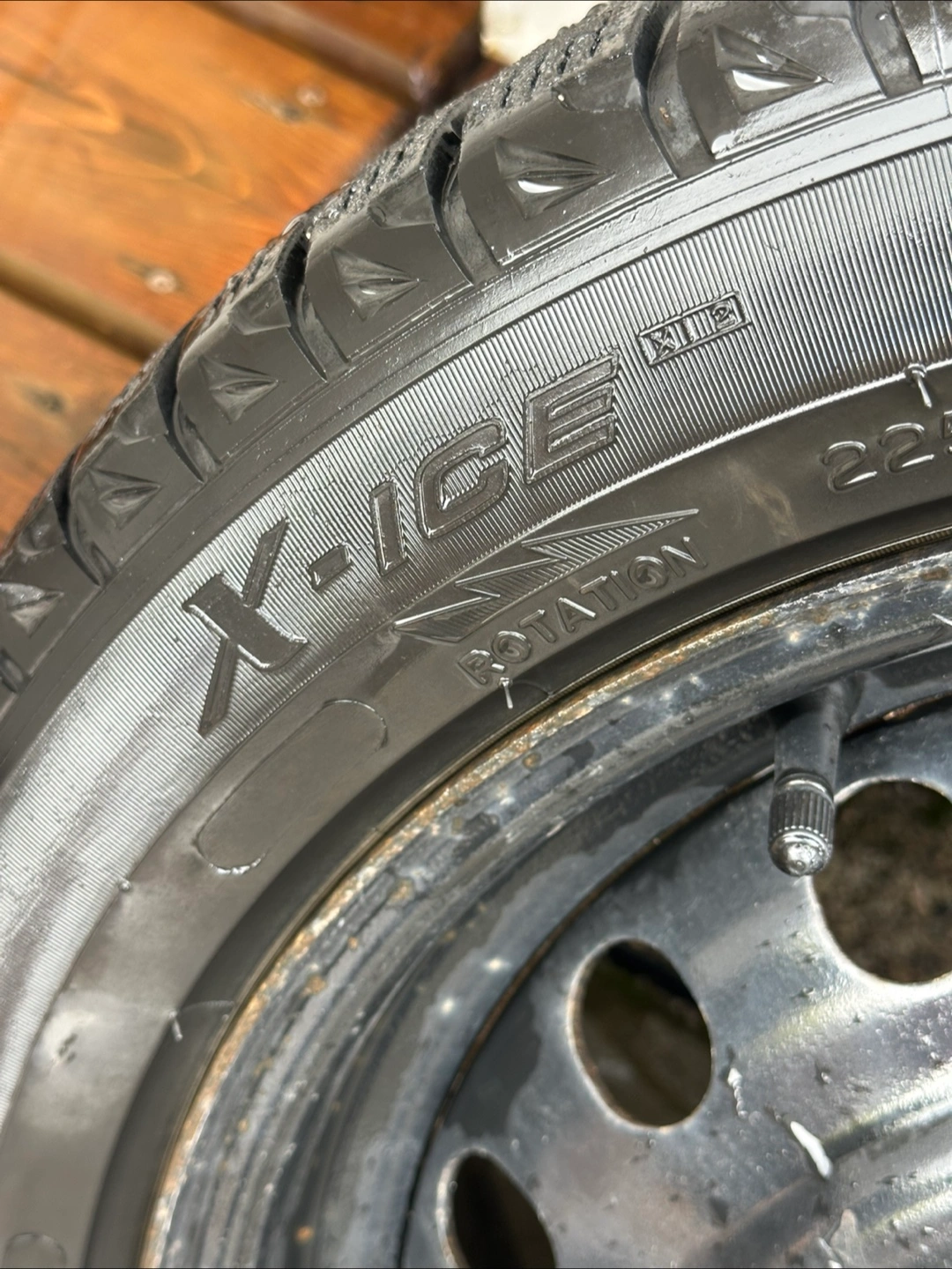 70Selling a set of four winter tires. They are size 225/50R17 and are X-ICE studless tires. Tires are in good shape likely 1 or more years left of tread.. bolt pattern is 5 x 114.3.. not sure about DOT date The black rims are in very good condition and retail for 40$ each brand new