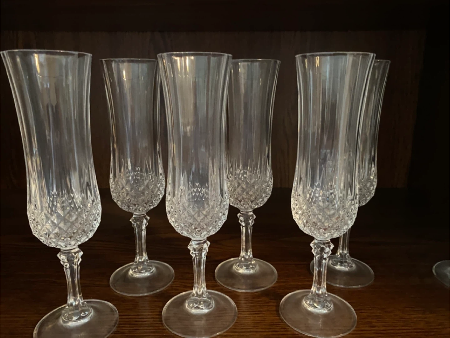 10Selling a set of 6 elegant crystal champagne flutes. They would be perfect for celebrations or adding a touch of class to any occasion! They are in great condition and ready for a new home