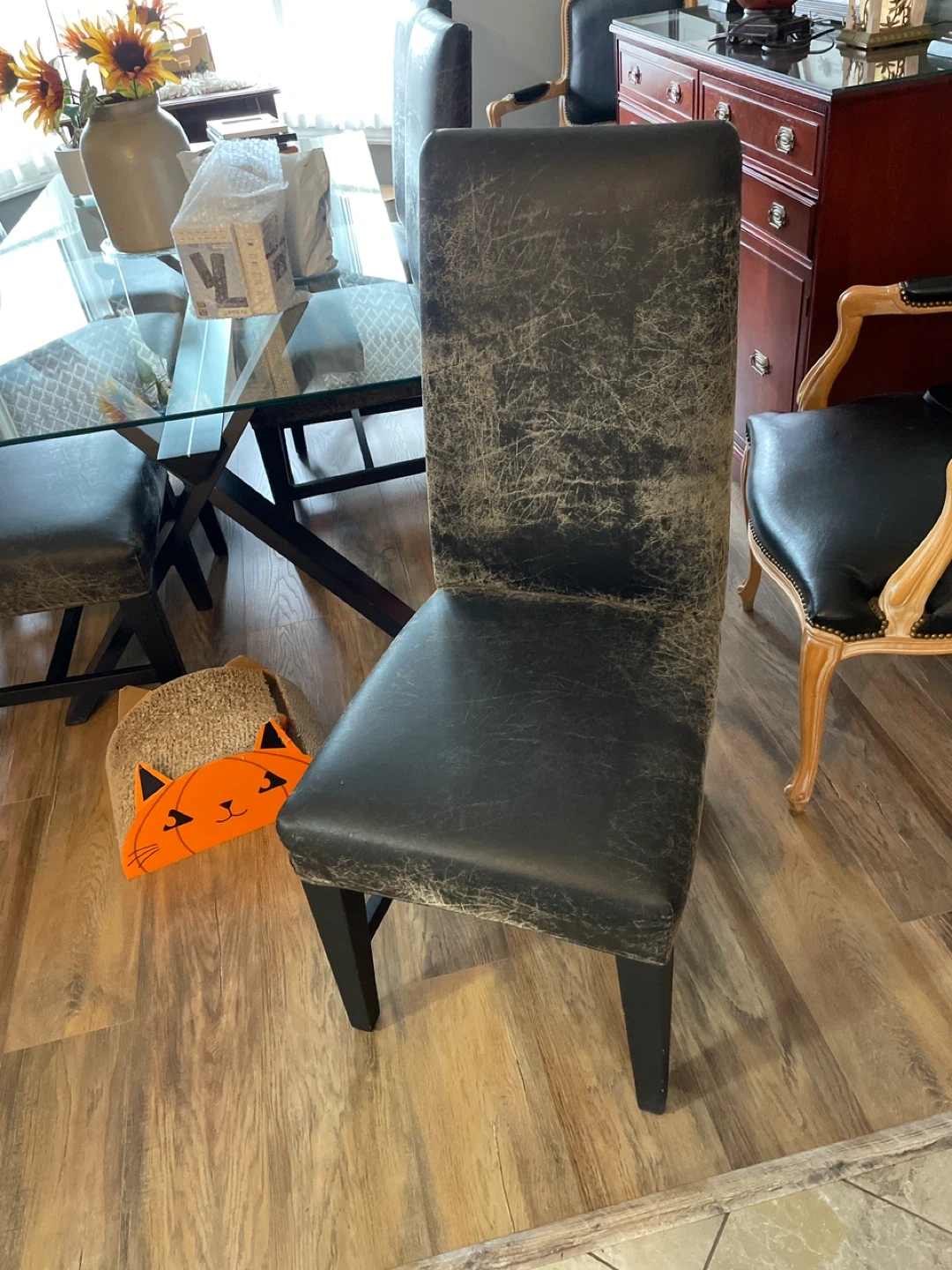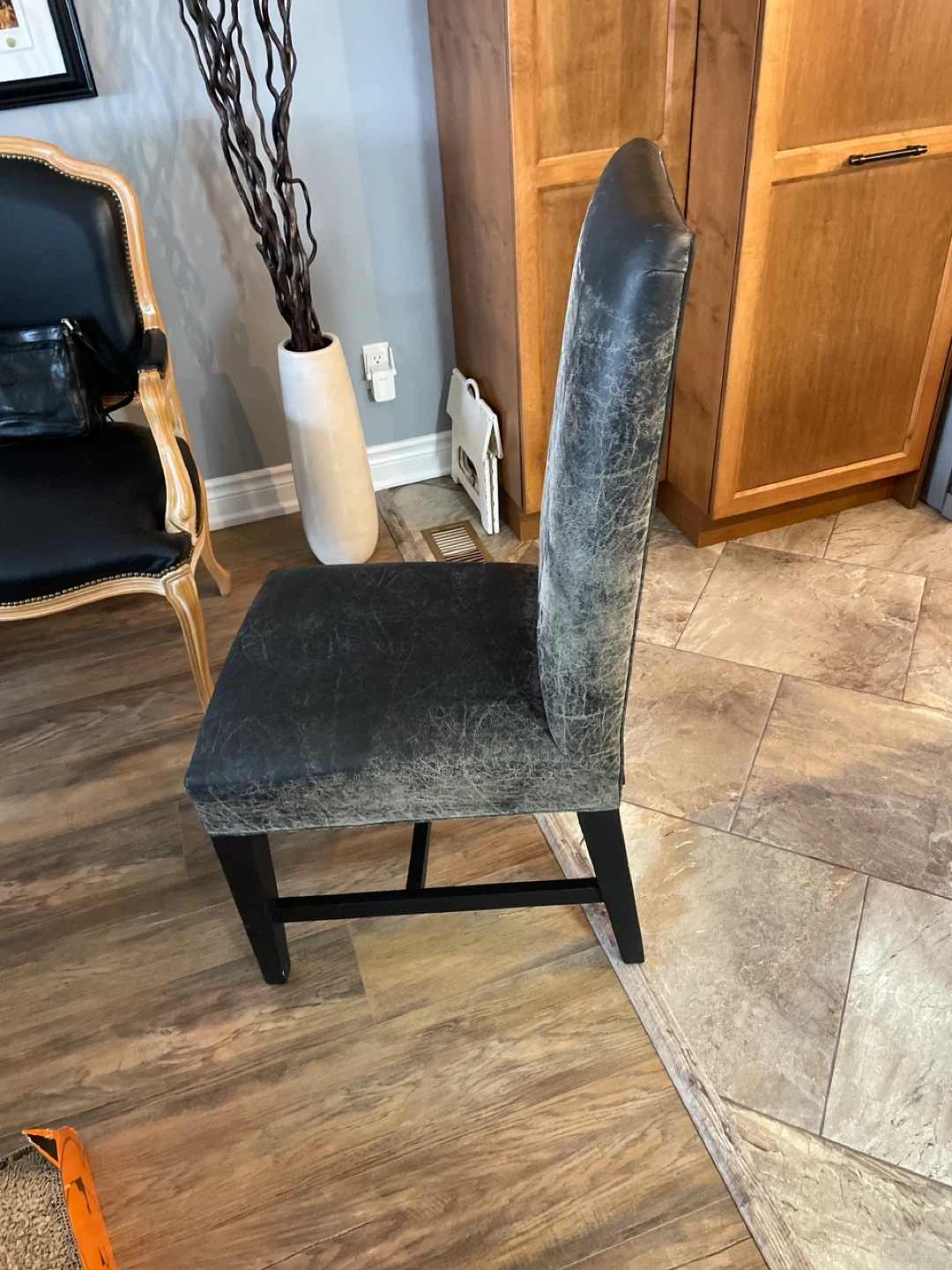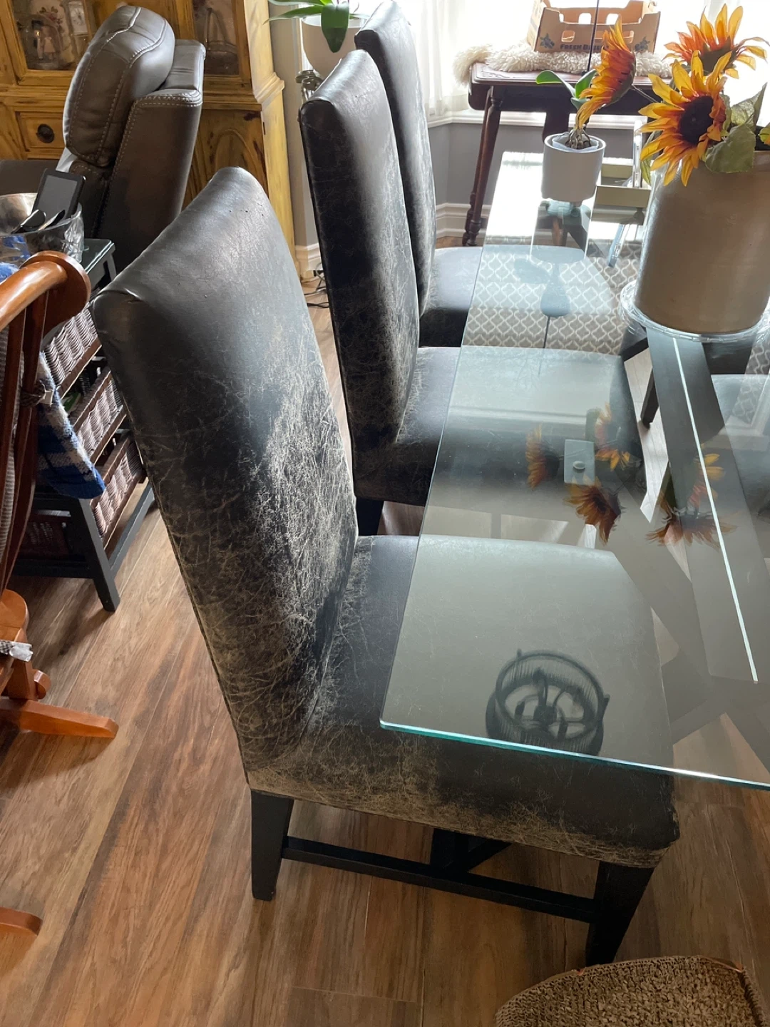 60Selling a set of six dining chairs. Options include the dining room GLASS table. $150 for entire set (table + 6 chairs) They are grey with a unique textured finish on the back. Perfect for adding a touch of elegance to your dining space! Each chair $20 firm All 6 for $75 Rarely used as expected in a dining room set. Add $100 for Glass table and stand.