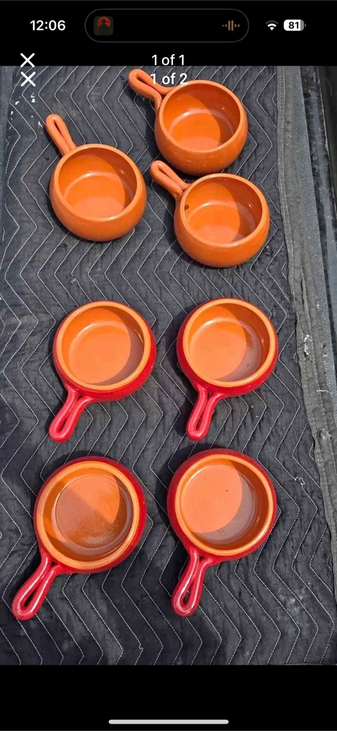 23Selling a set of six small ceramic cocotte pans! There are two different colours, a terracotta orange and a bright red. These are perfect for individual desserts or appetizers!
