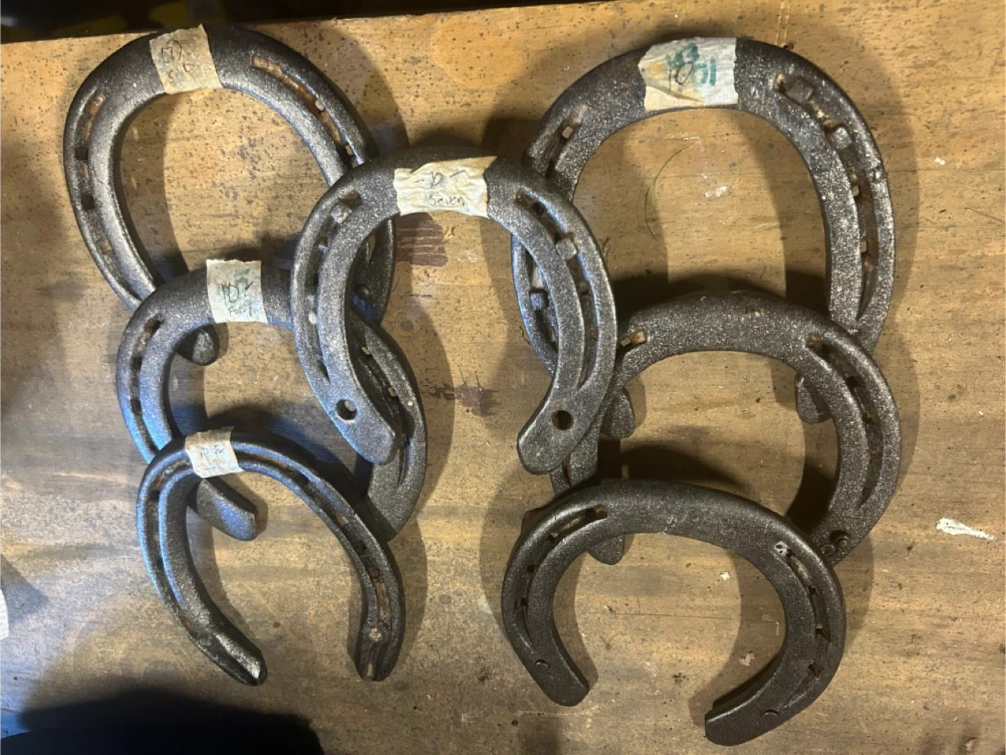 111Selling a set of six used horseshoes. They appear to be in good condition, perfect for crafts or decoration!