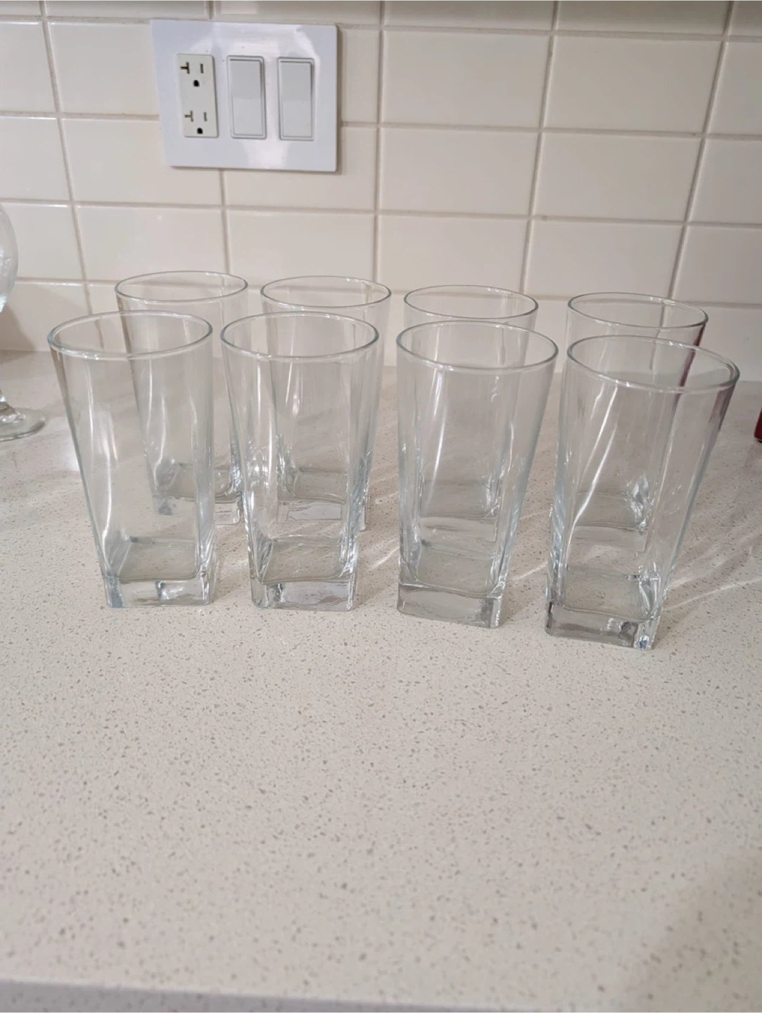 Selling a set of 8 clear drinking glasses. They are in great condition and ready for a new home! Perfect for everyday use or for entertaining guests