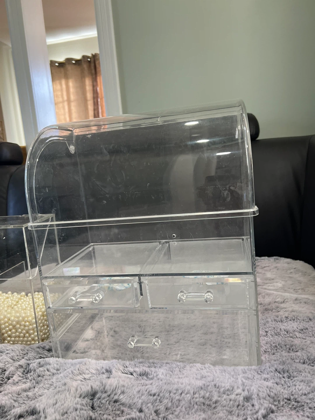 20Selling a set of clear acrylic makeup organizers! It has multiple compartments and drawers, perfect for storing all your cosmetics and accessories. It's in great condition and ready for a new home.