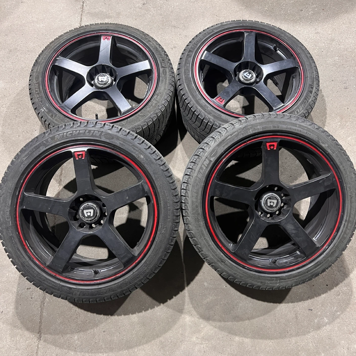 Selling a set of four Motegi aluminum rims paired with Michelin Xice snow tires. The tire size is 245/40R18. They're in good condition and ready to be put on your ride!