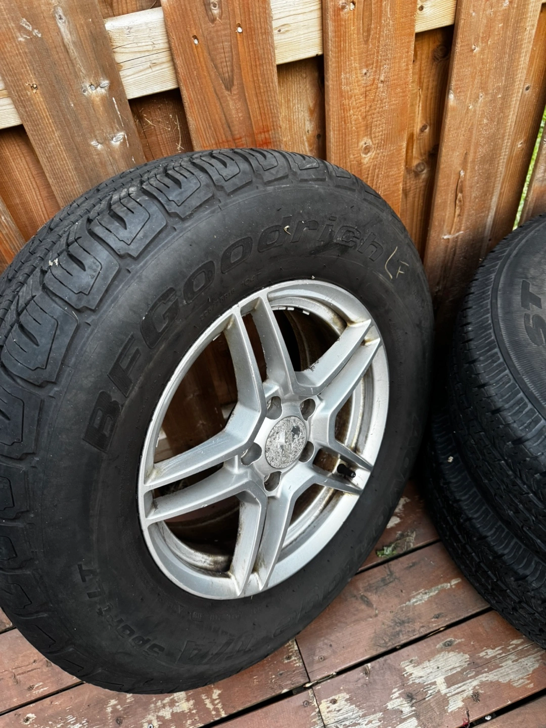 10Selling a set of BFG Radial Long Trail T/A tires. They show some signs of use, as you can see in the pictures, but still have some life left in them! 225/75/16 Bolt pattern is 5x114