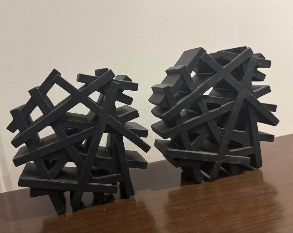 15A set of black abstract bird's nest bookends in excellent condition available for pickup in crescent heights.