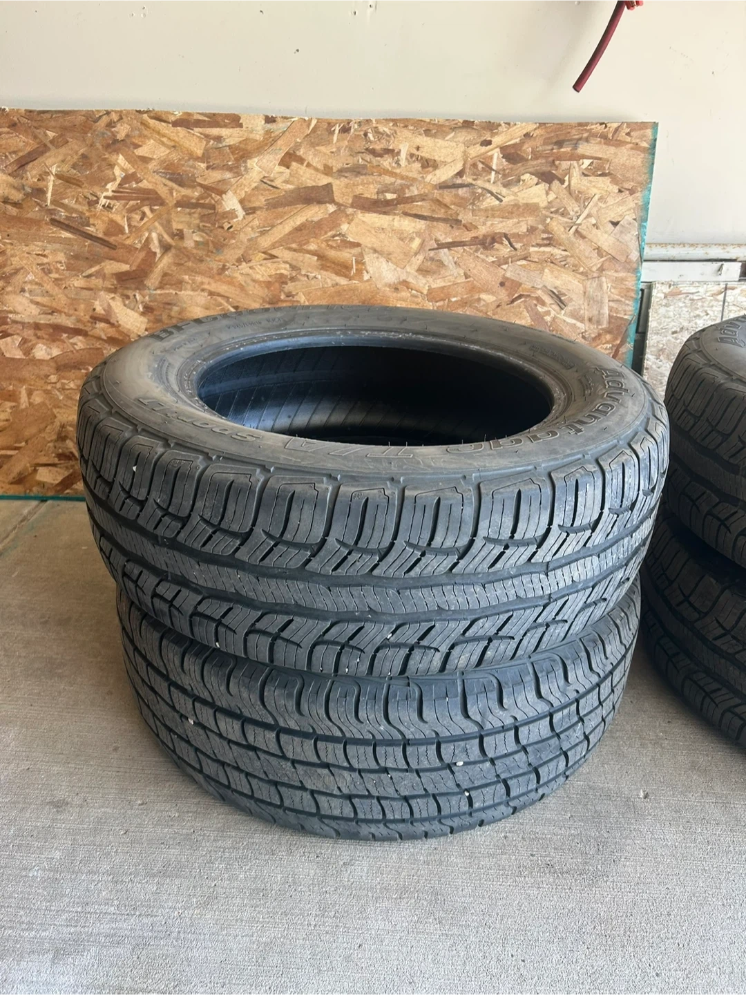 5Selling a set of Bridgestone All Weather Tires with one tire that is a motomaster. The size is 245/60R18. They're in good condition and ready for your vehicle!