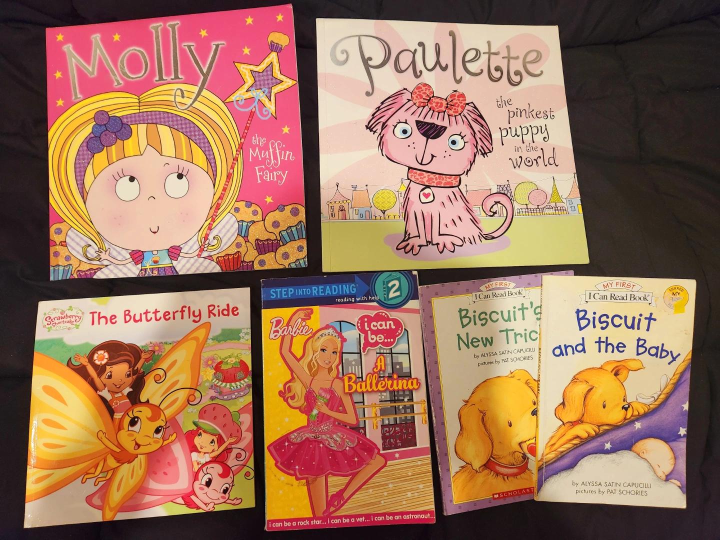 ●Molly book---NEW ●Barbie book---USED GOOD ●Paulette book---NEW ●Strawberry Shortcake book---NEW ●2 Biscuit books---USED GOOD $7 total for everything. Firm. Pickup only. Cash only.
