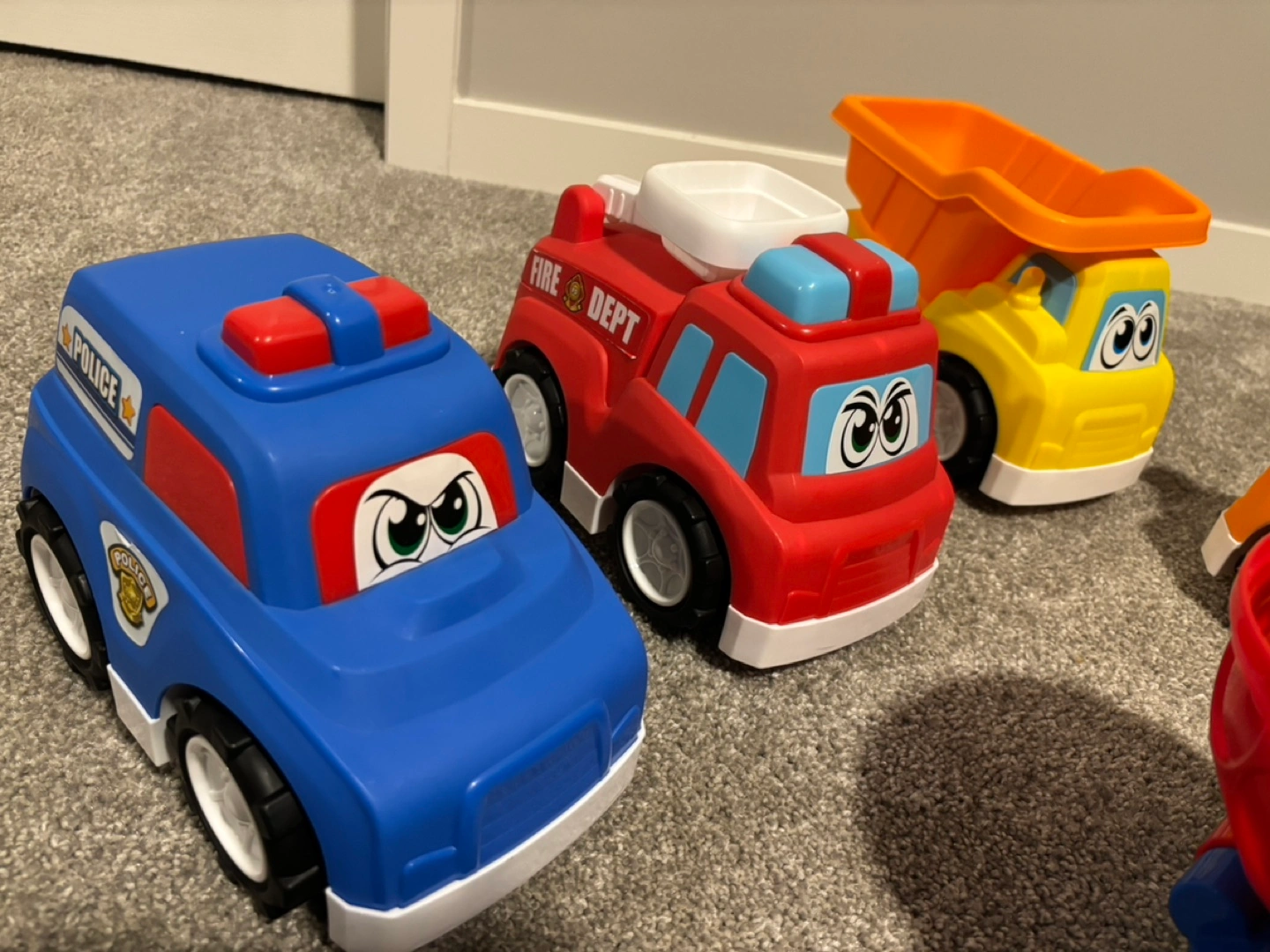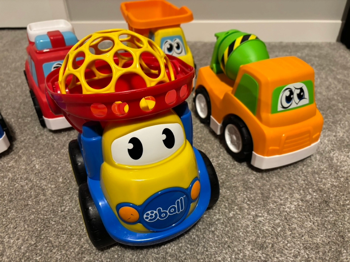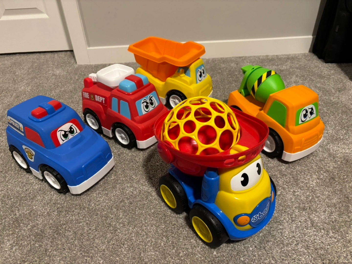 17Set of five toy vehicles. Includes police car, firetruck, dump truck, and cement mixer. Durable plastic construction. Great for imaginative play. $15 for the set Edgemont pick up Please check out my other listings