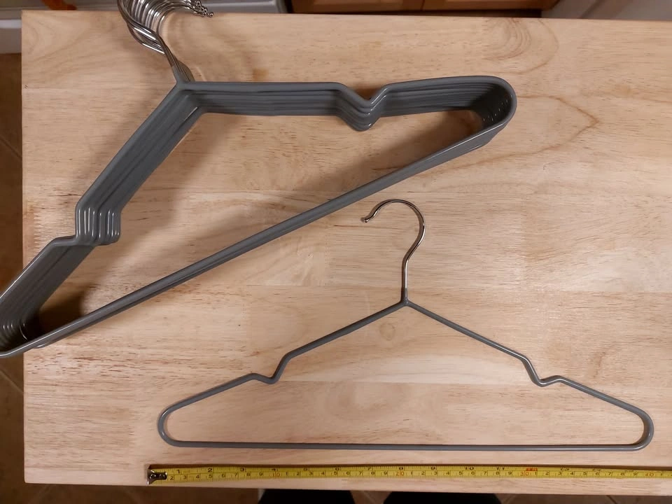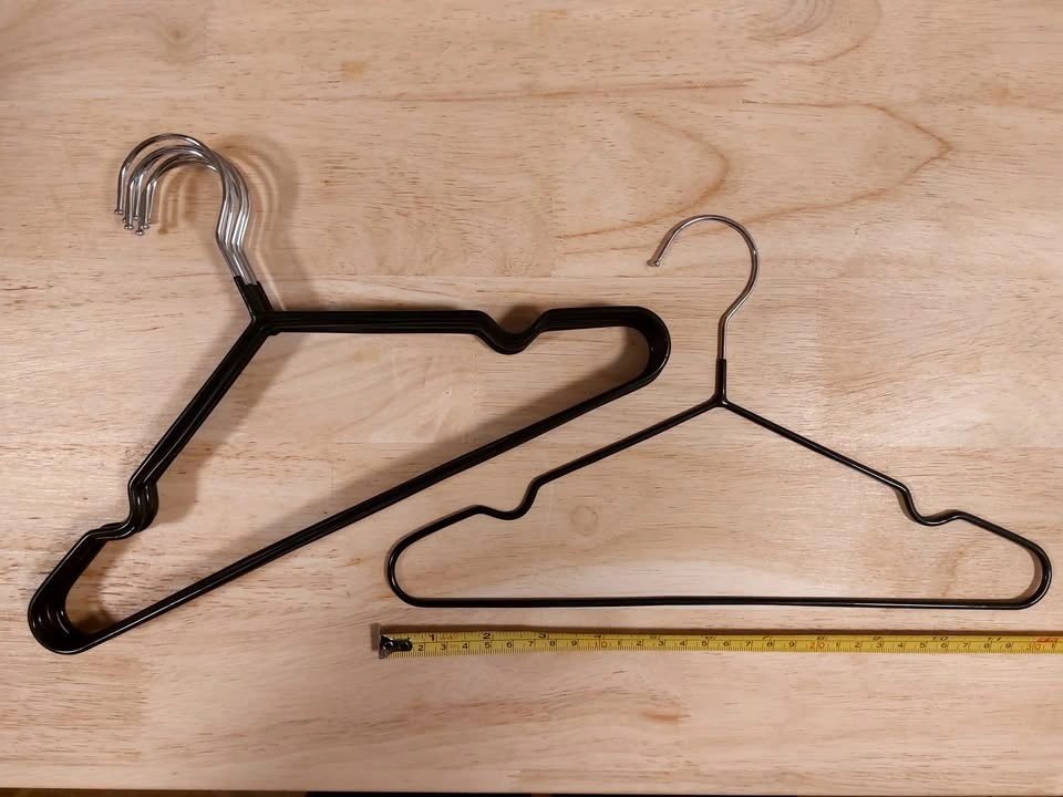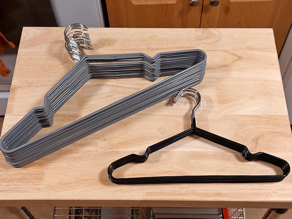 145These stainless steel hangers have a non-slip finish to prevent clothes from slipping off. The slim design makes it convenient for saving space in your closet. Two sizes. Black hangers are 12” wide (8 count). Grey hangers are 16” wide (16 count). Sold all together. Pickup near Fraser St and 20th Ave
