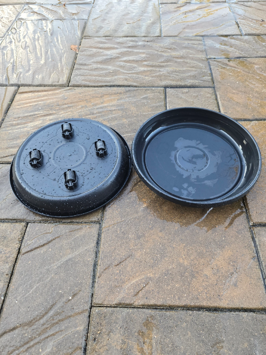 10Set of TWO Black Plant Pot Saucer with Wheels 11" wide, 9" inside diameter Pick up from Richmond Hill Cash only