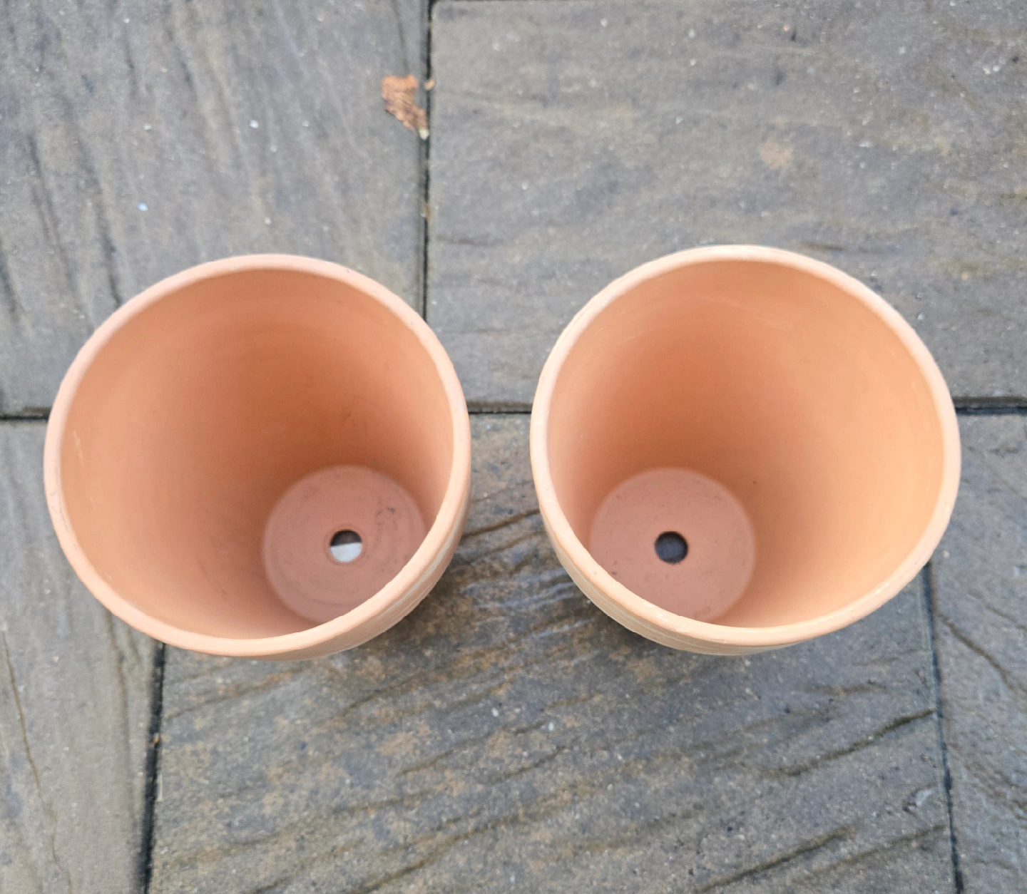 Set of 2 terracotta plant pots with whole 6.5" D x 8"H Pick up from Richmond Hill Cash only