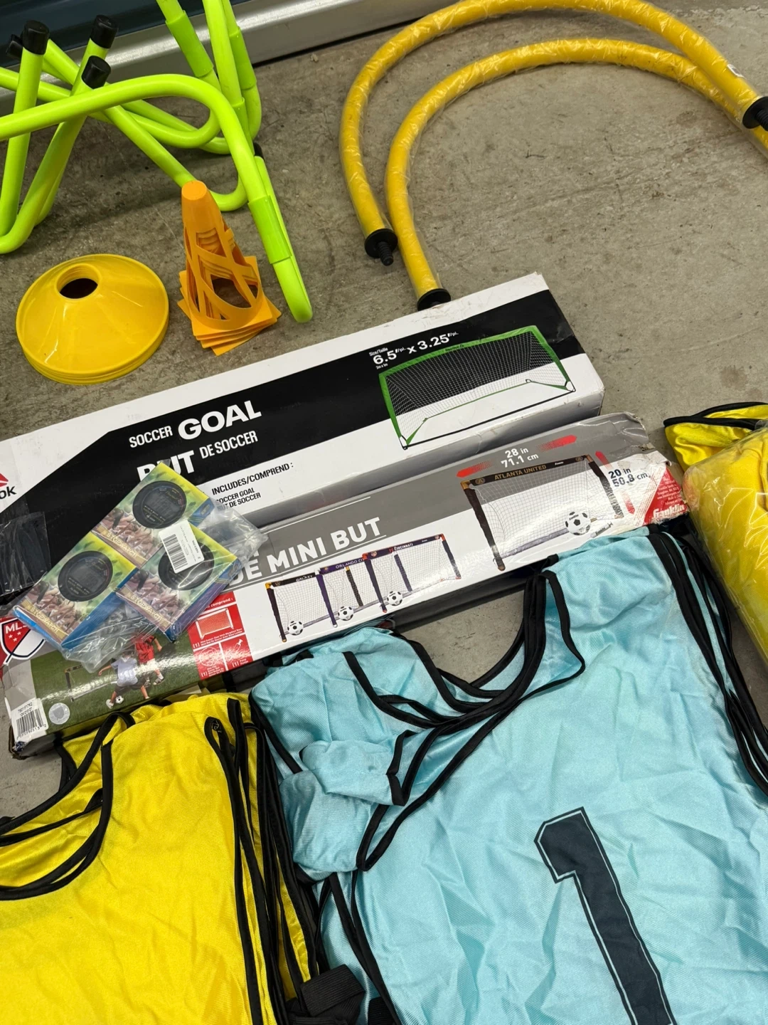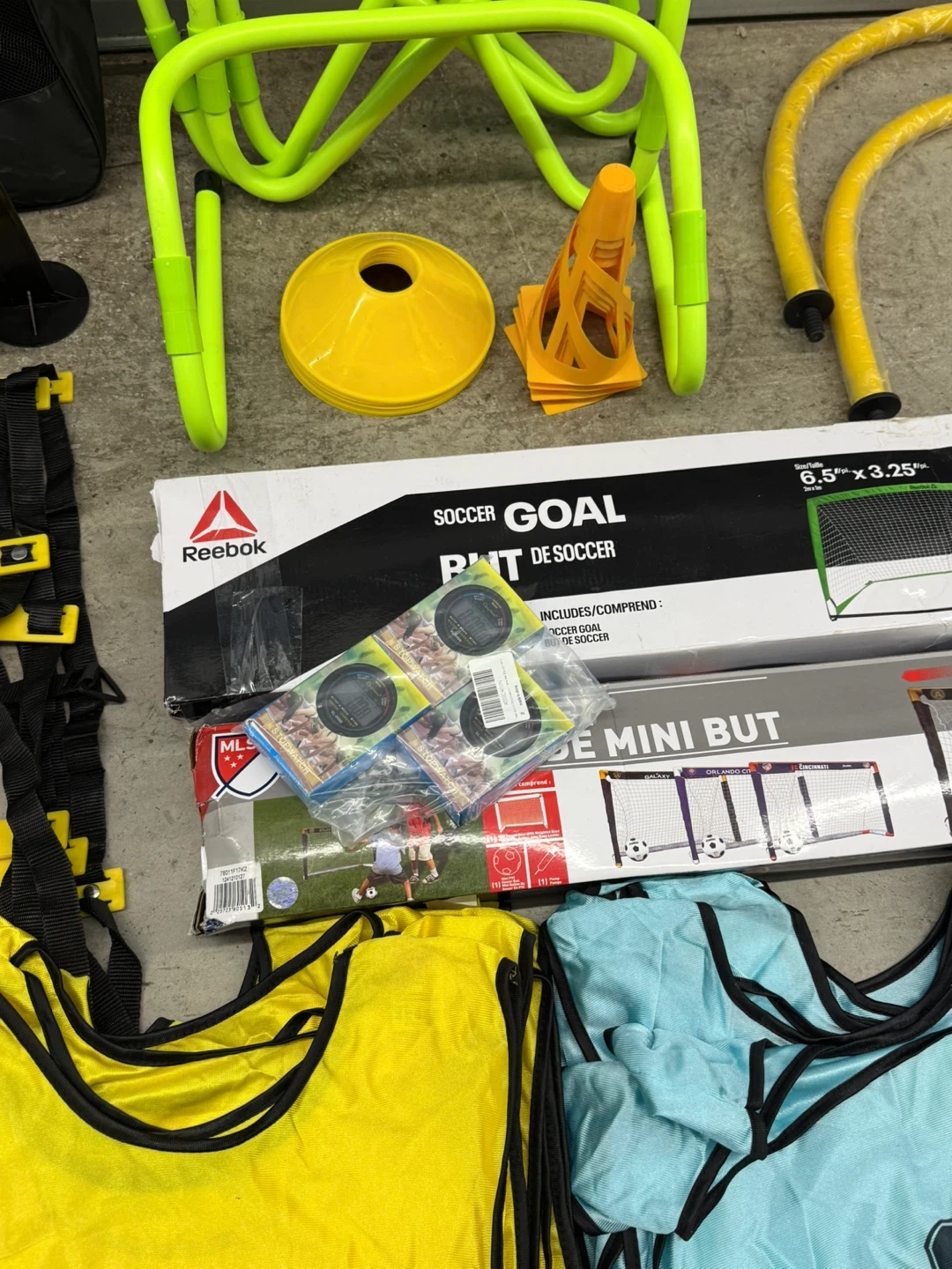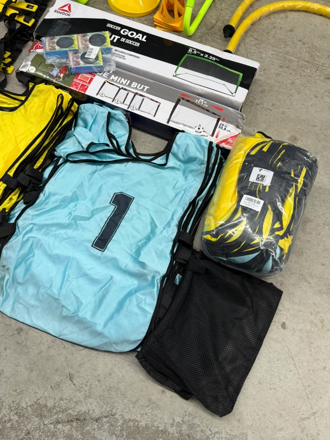 124Set Soccer Training Equipment Kids 48 pcs Kid's Football Pinnies Yellow/Blue 2 mini But Training equipment Sell only all set Location Etobicoke