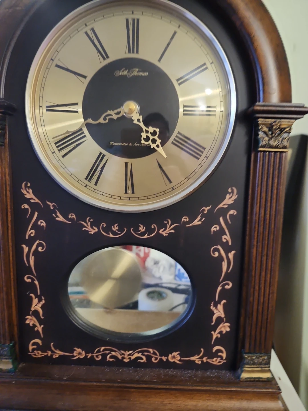 Selling a Seth Thomas clock that features both Westminster and Ave Maria chimes! It's a beautiful piece that would look great in any home. The clock is in good condition and keeps accurate time