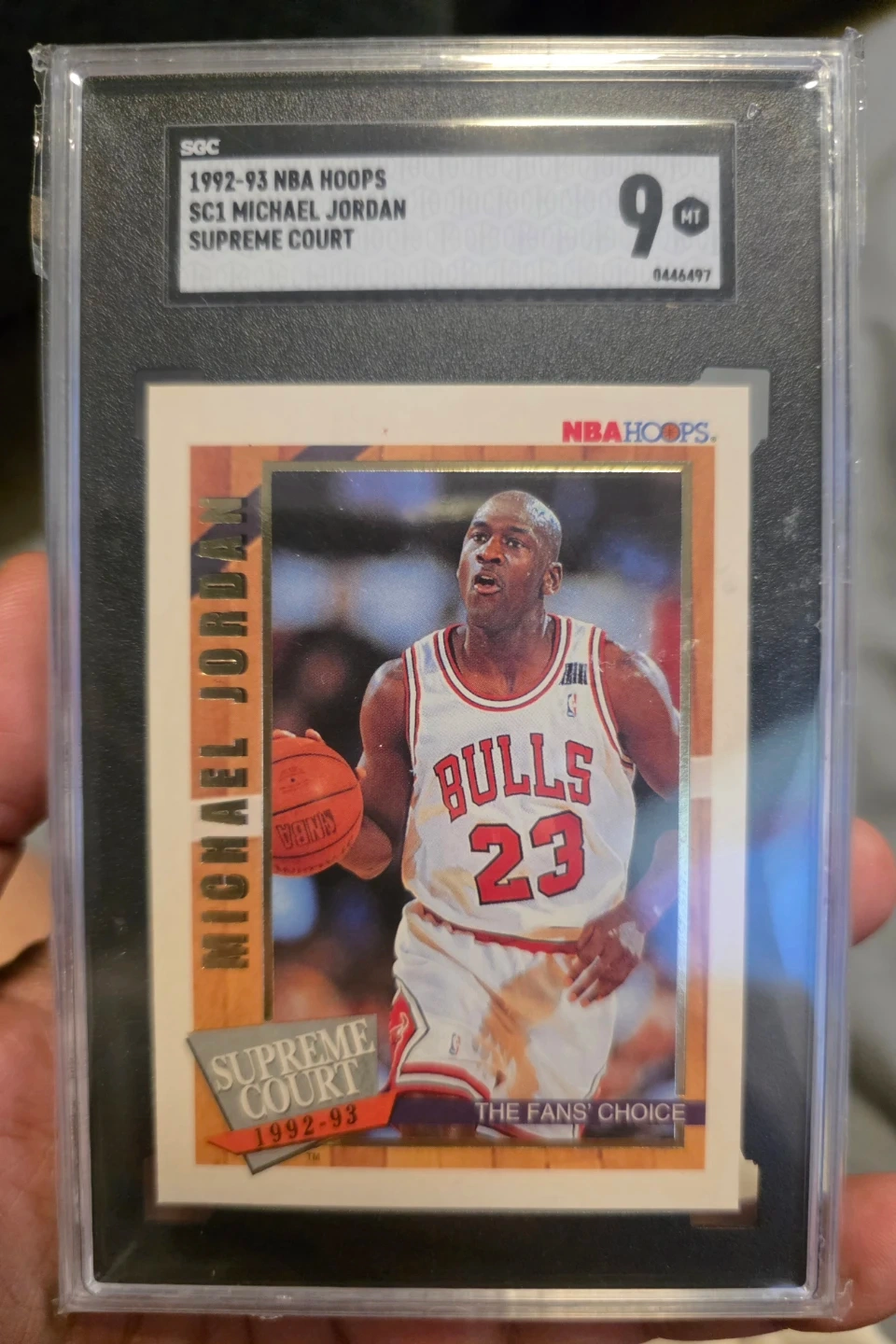 Buy & Sell1992-93 NBA Hoops Michael Jordan Supreme Court Card1992-93 NBA Hoops Michael Jordan Supreme Court Card$130This is a 1992-93 NBA Hoops SC1 Michael Jordan Supreme Court trading card. It's graded 9 MT by SGC. The card features "The Fans' Choice" designation.ConditionNewWHERE TO MEETGuildford Town CentreView MapSELLERverifiedWinstonGuildford24114 reviews0 chats·0 favorites·5 viewsSEND CHAT TO SELLERHi Winston! I’m interested in your listing.Hi Winston! I’m interested in your listing.Get the Karrot app to chatSign In to chat