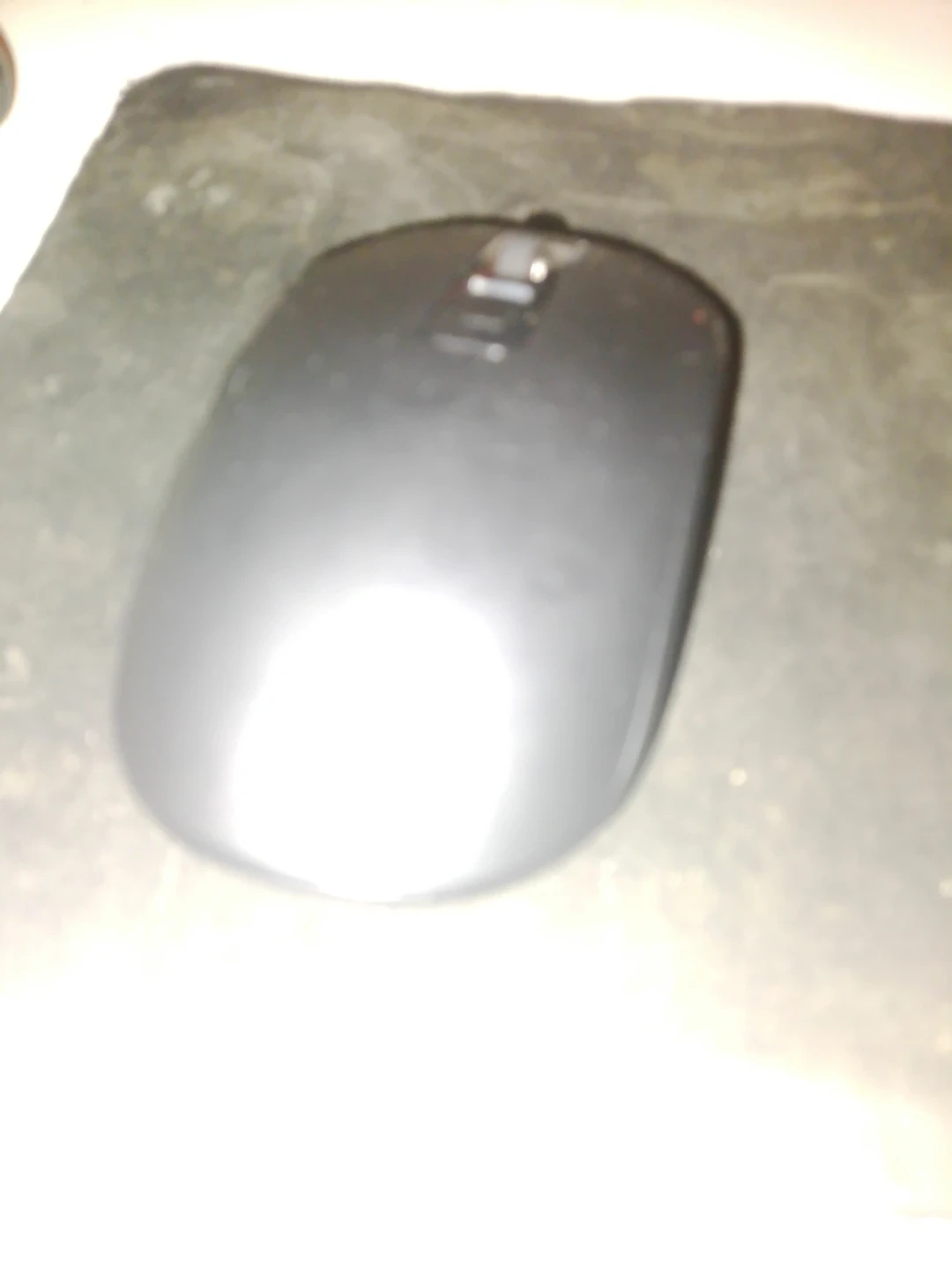 It's a black wireless computer mouse. It uses a USB receiver for connection. This mouse is comfortable to hold for extended use.