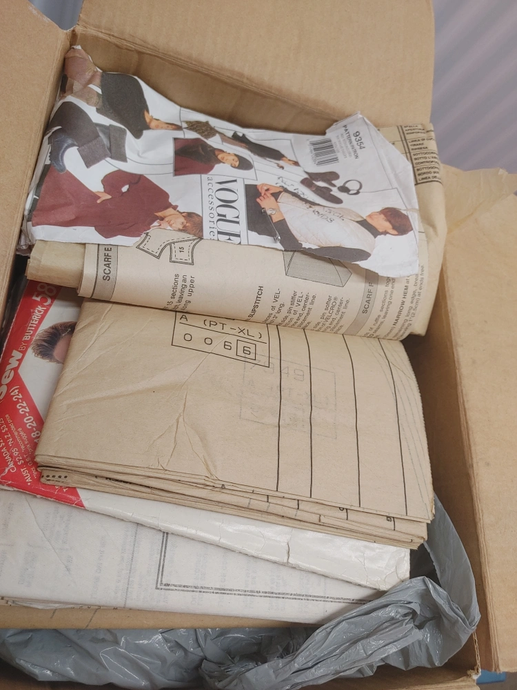 29A collection of sewing patterns, including Vogue and Butterick patterns. Sizes vary, but one pattern visible is size PT-XL. Great for your next sewing project!