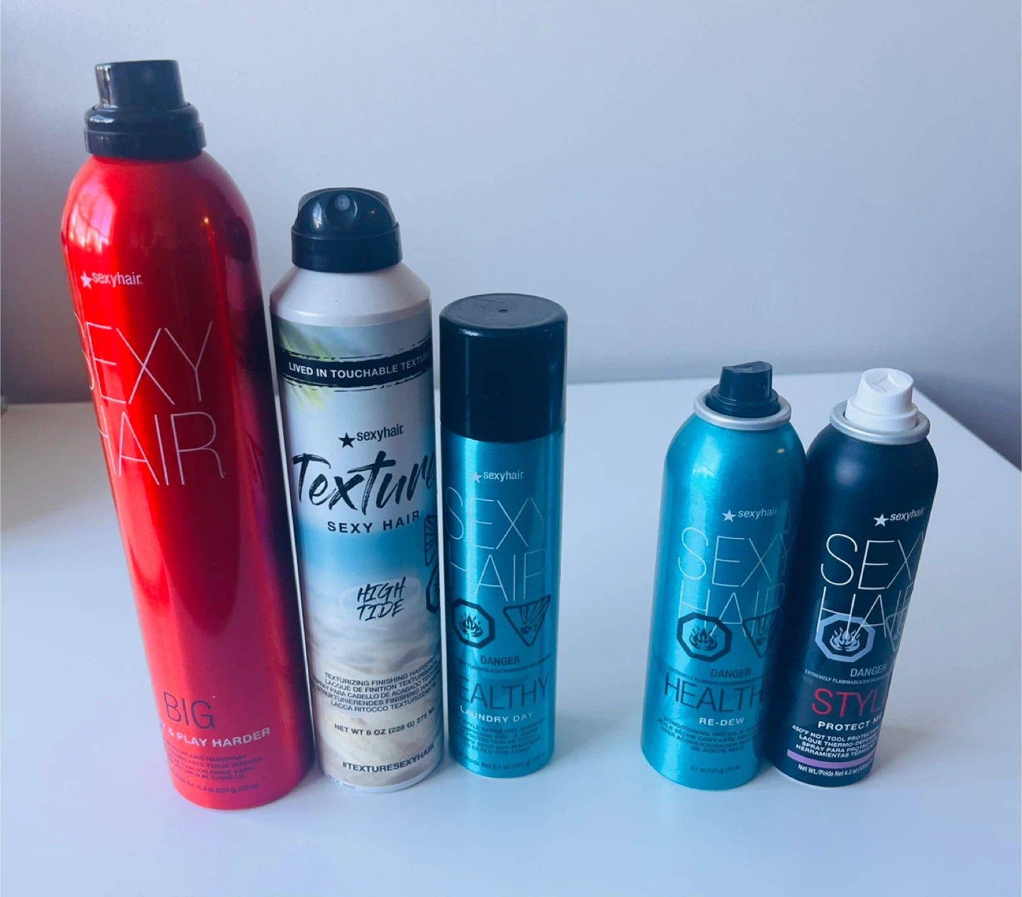 10Selling a variety pack of Sexy Hair products! Includes: - Big Sexy Hair - Big & Play Harder Volumizing Hairspray - Sexy Hair Texture - High Tide Texture Spray - Sexy Hair Healthy Laundry Day Dry Shampoo - Sexy Hair Healthy Re-Dew Conditioning Dry Oil - Sexy Hair Style Protect Me Hot Tool Protection Hairspray Brand new! only protect me and laundry spray partly used, some missing lid.
