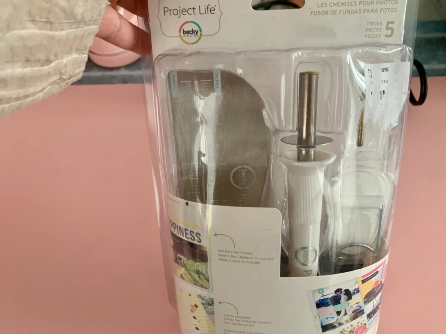 This Project Life kit includes a heat tool, fusing tip, cutting tip, ruler, and tool stand. It's designed for sealing photo sleeves and creating custom size sleeves. Perfect for scrapbooking and photo album projects!