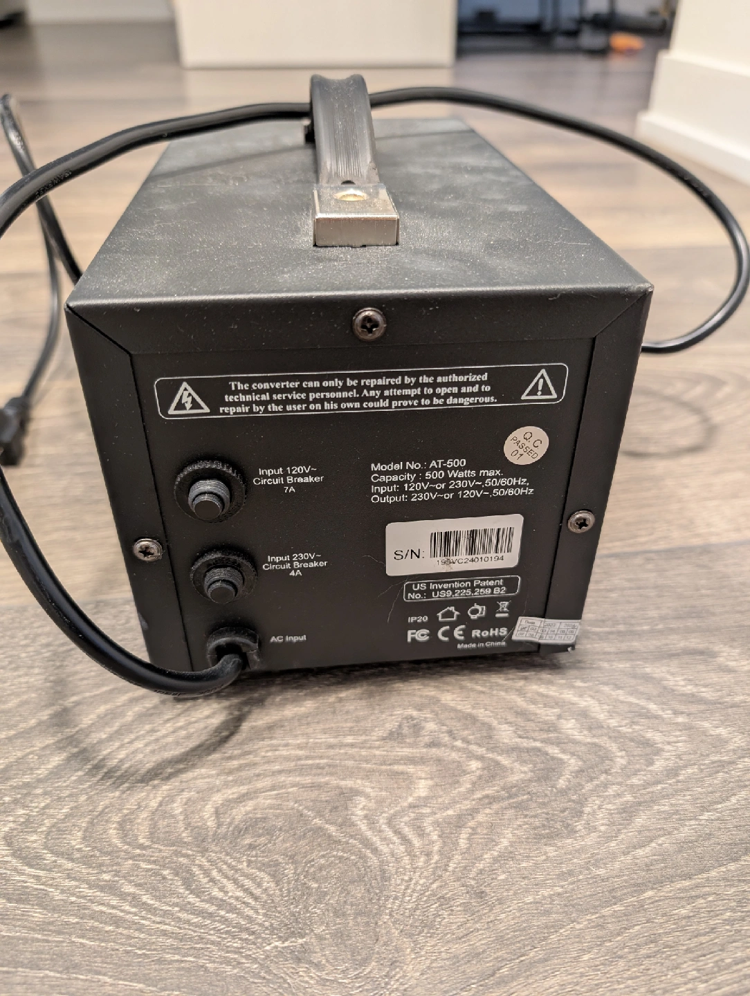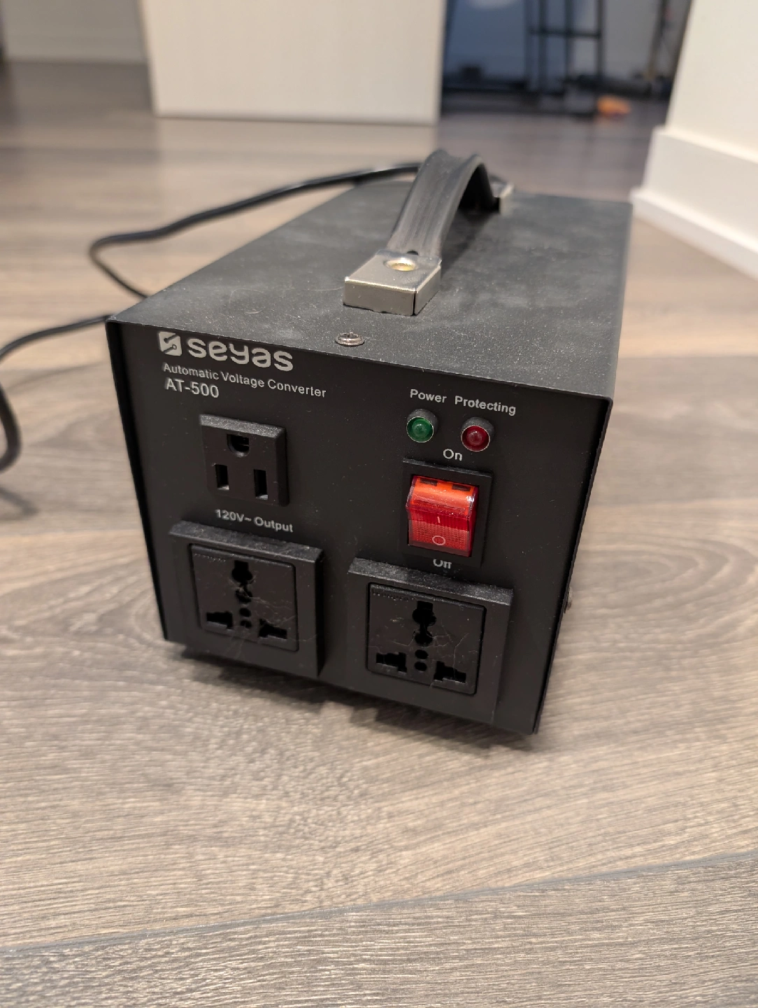 71Selling a Seyas AT-500 automatic voltage converter. It has a 120V output and is power protecting. The model number is AT-500 and it can handle 500 watts max. Input can be 120V or 230V at 50/60Hz. Output is 120V or 120V/60Hz