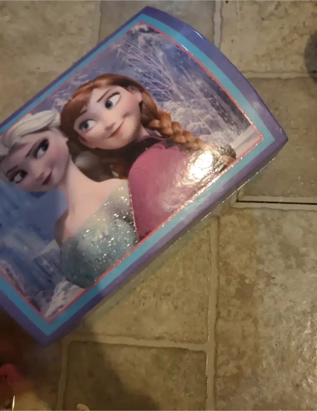 Selling a cute Disney Frozen musical jewelry box! It features Anna and Elsa on the top and plays music when opened. Perfect for storing little treasures