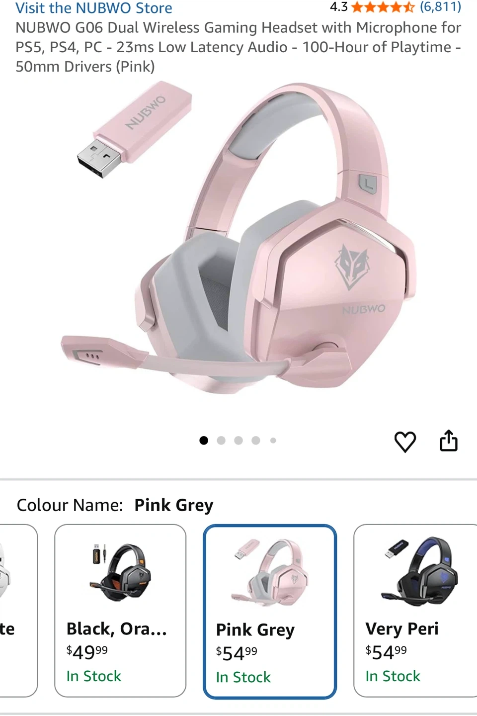 This NUBWO G06 gaming headset offers dual wireless connectivity. It features 50mm drivers for clear audio and 100 hours of playtime. Compatible with PS5, PS4, and PC. Brand new and never used