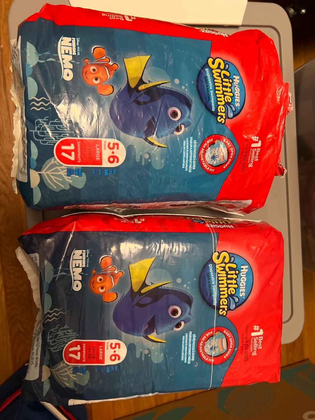 Huggies Little Swimmers disposable swimpants, perfect for your little one's water adventures! These are size 5-6, suitable for babies 32+ lbs or 14+ kg. Easy open sides for an adjustable fit!