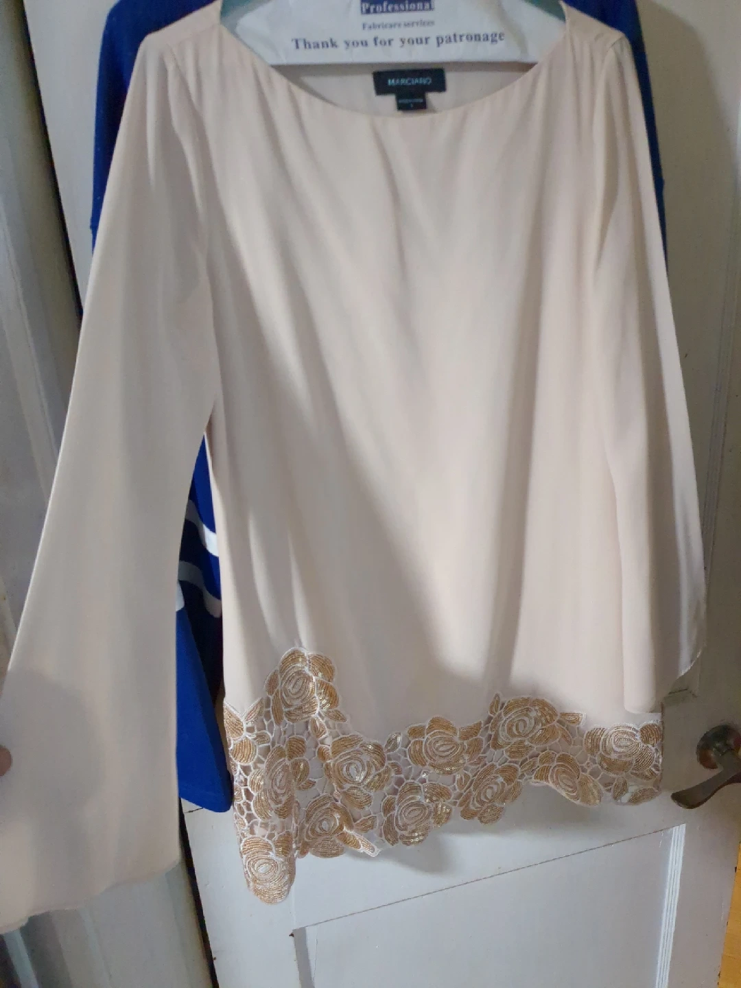 Selling a lovely Marciano tunic in a soft beige colour. It's a size small and features a beautiful lace detail at the bottom