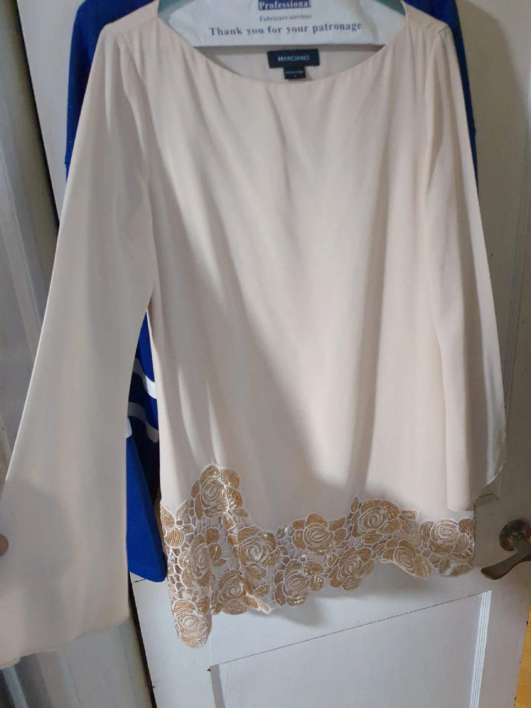Selling a lovely Marciano tunic in a soft beige colour. It's a size small and features a beautiful lace detail at the bottom