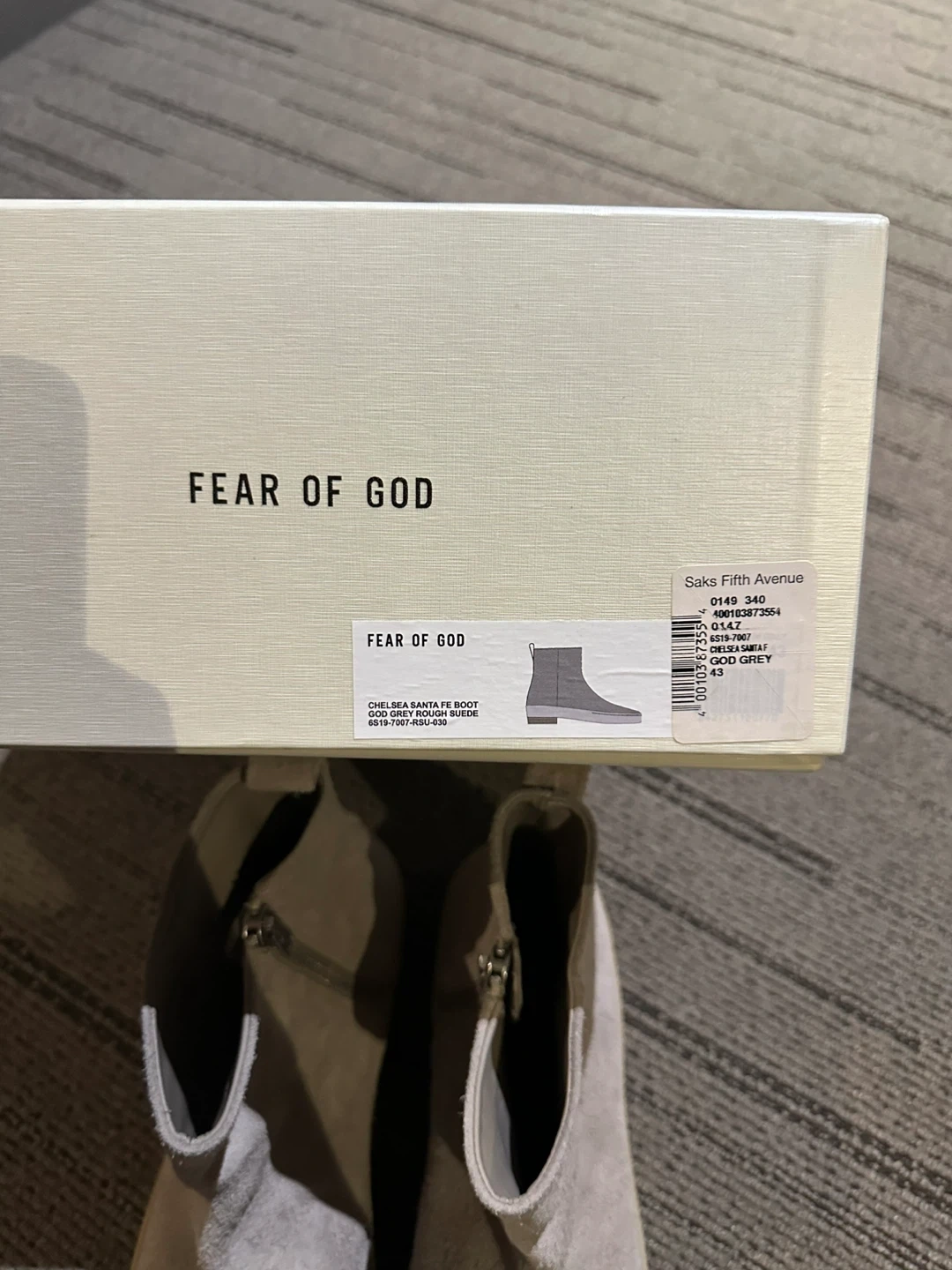 Selling a pair of Fear of God Chelsea Santa Fe boots in EU 43. These boots are a stylish addition to any wardrobe and come with the original box!