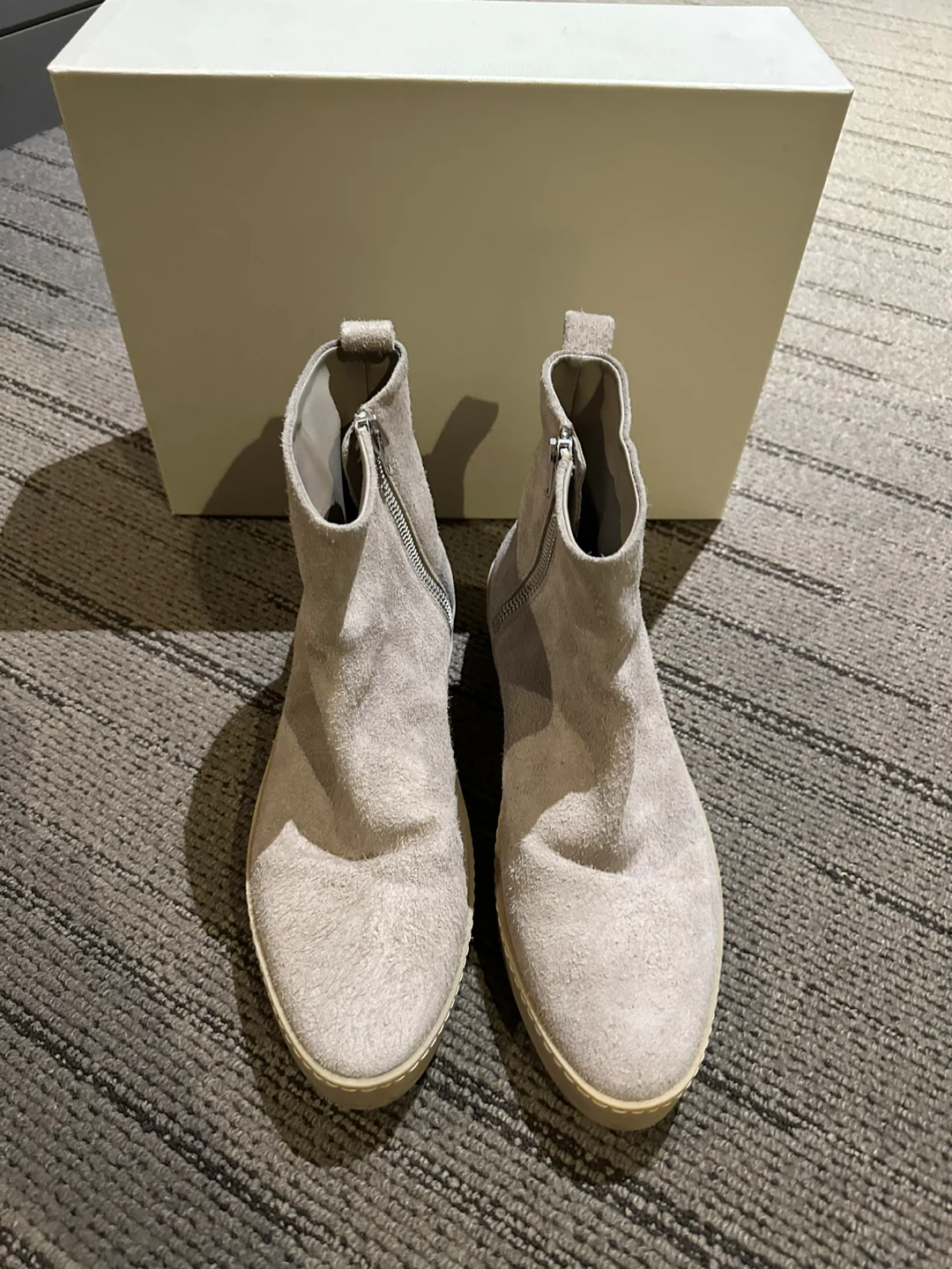 Selling a pair of Fear of God Chelsea Santa Fe boots in EU 43. These boots are a stylish addition to any wardrobe and come with the original box!