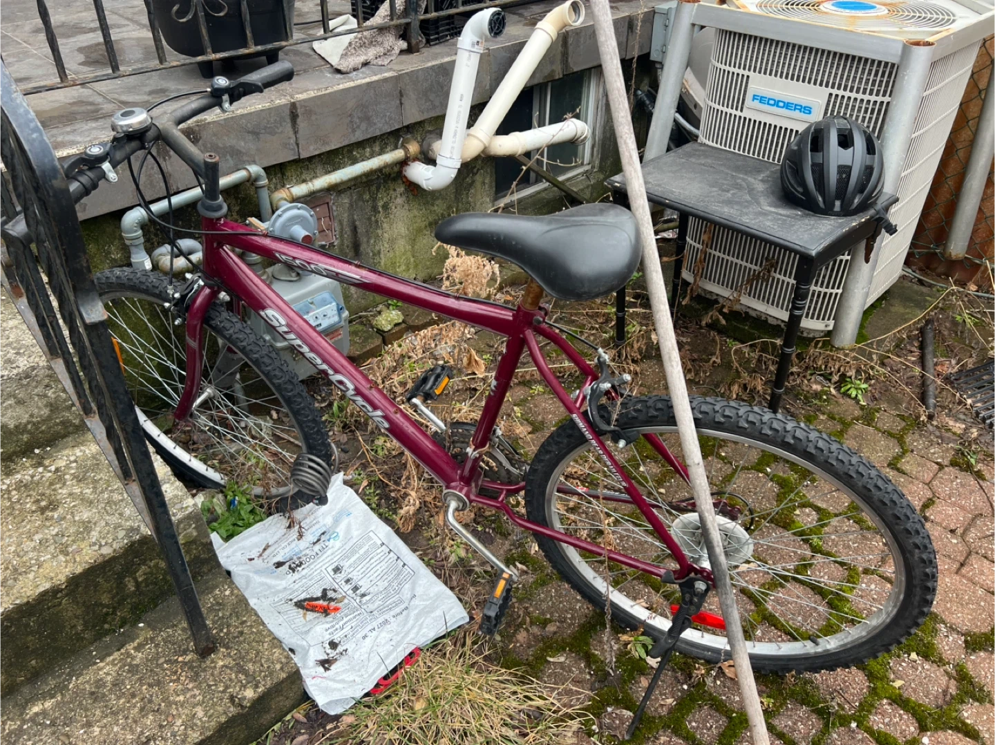 Used Super Cycle bicycle in a burgundy colour.