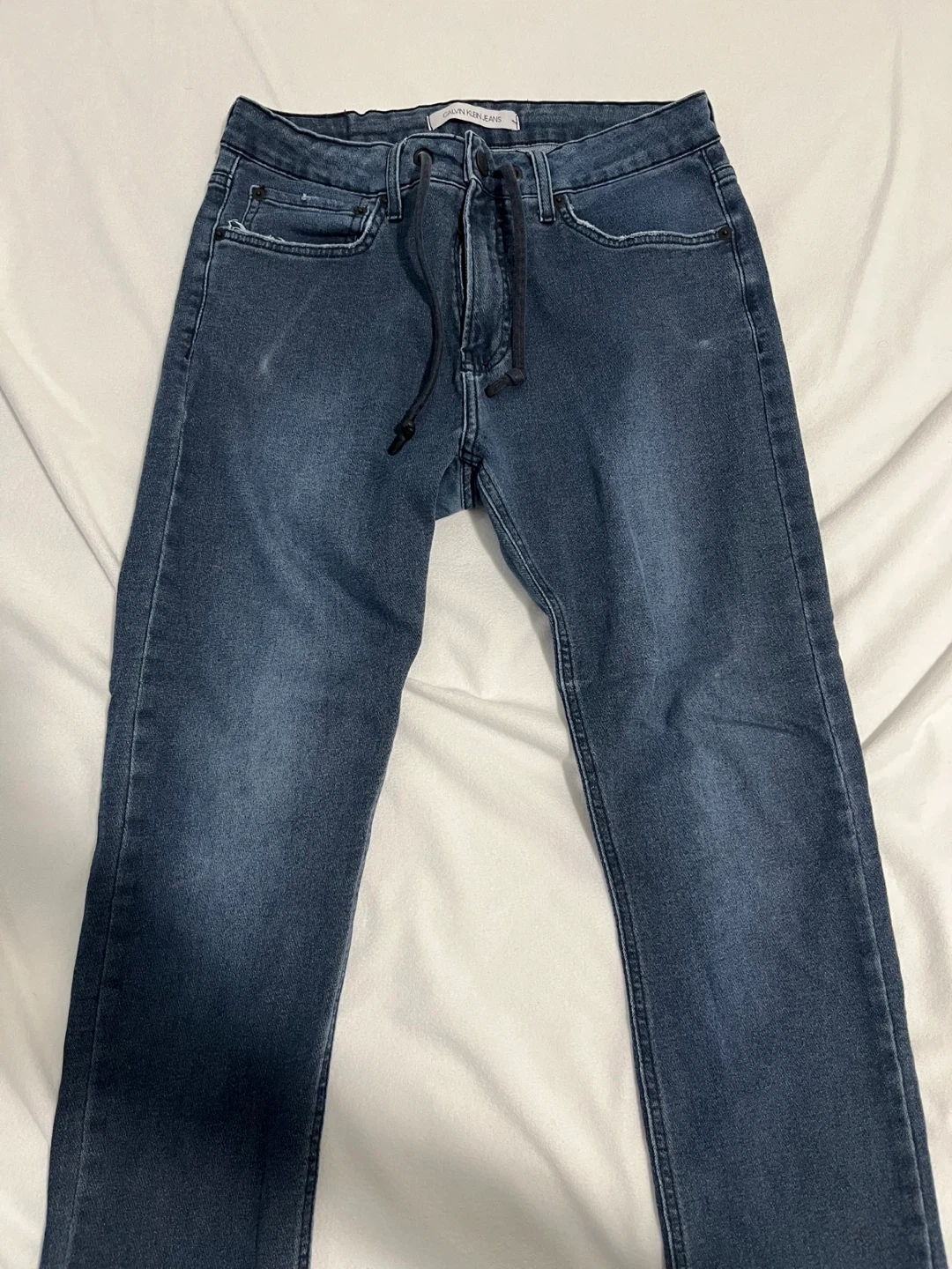 Calvin Klein Jeans drawstring waist denim pants. Size 31/40. Blue wash.