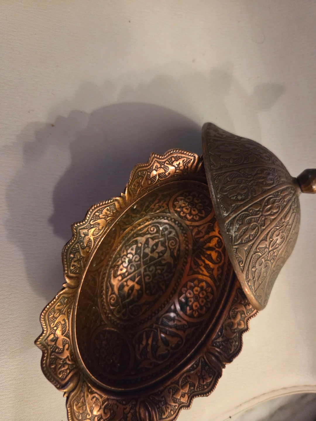 Antique Embossed Copper Trinket Dish with Lid