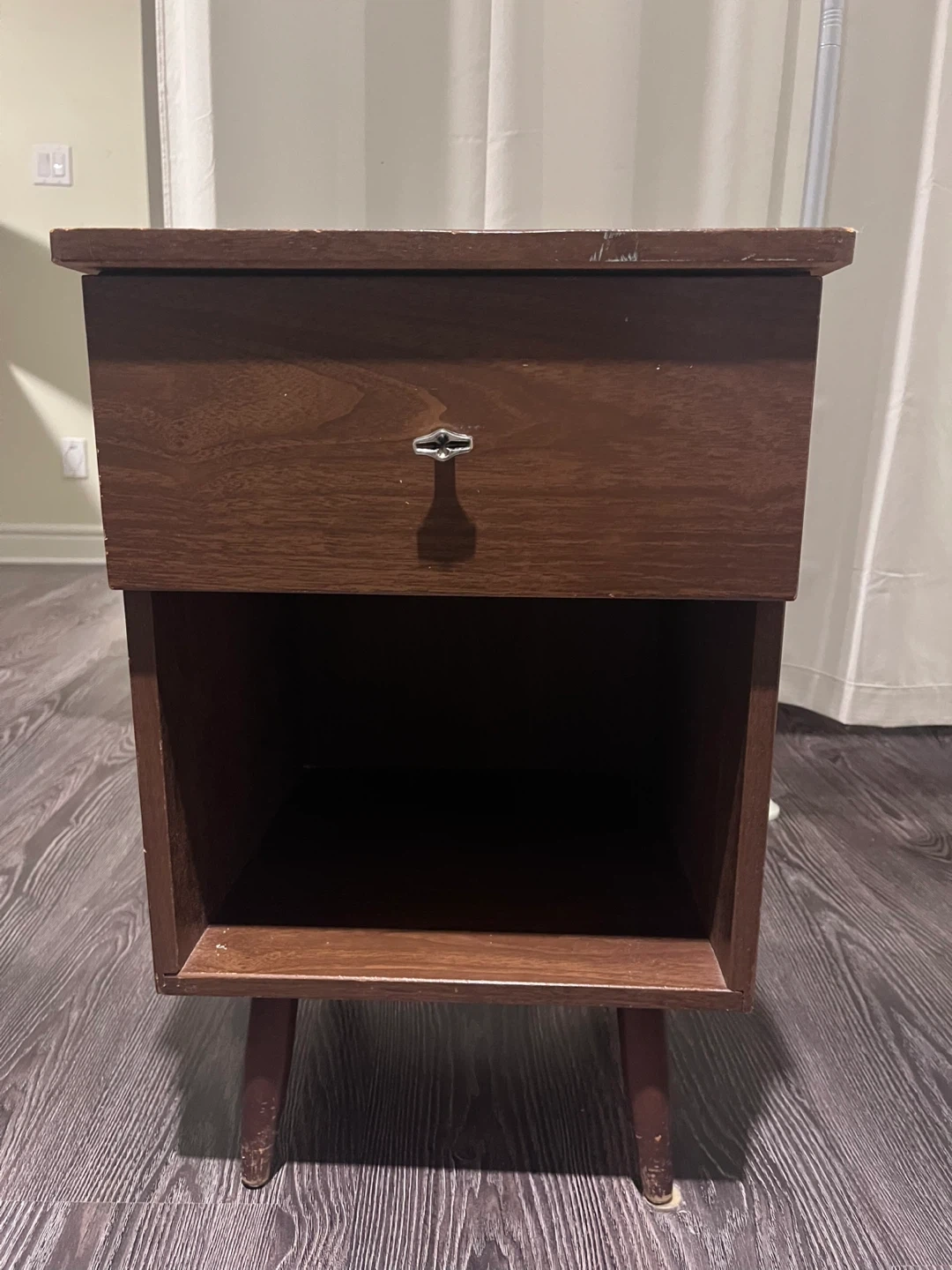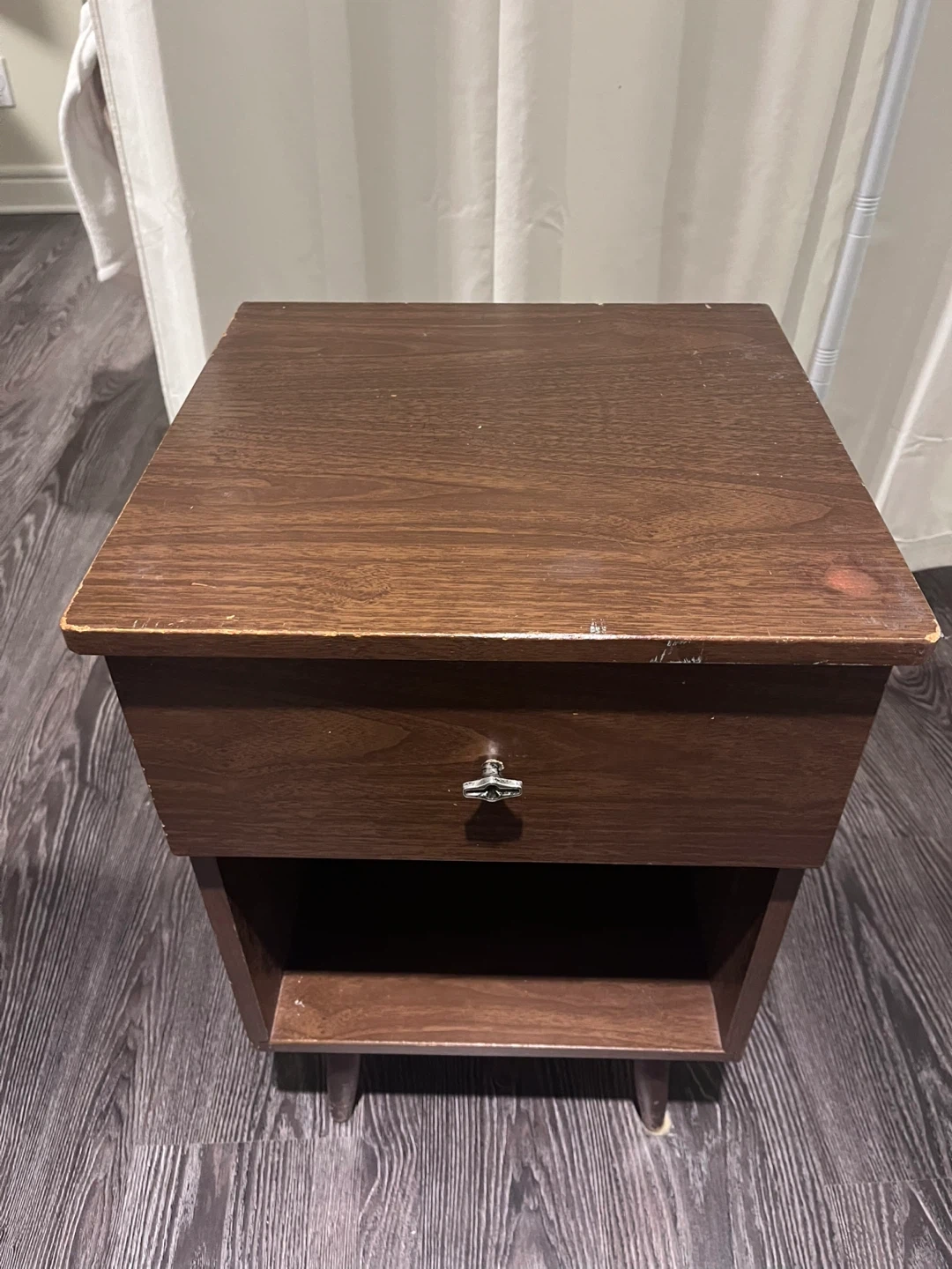 Buy & SellNightstand with DrawerNightstand with Drawer$9Used Wooden nightstand with a single drawer and an open shelf below. Dimensions are on photos 5-7.ConditionGoodWHERE TO MEETCloverdaleView MapSELLERAlyCloverdale150 reviews0 chats·0 favorites·13 viewsSEND CHAT TO SELLERHi Aly! I’m interested in your listing.Hi Aly! I’m interested in your listing.Get the Karrot app to chatSign In to chat