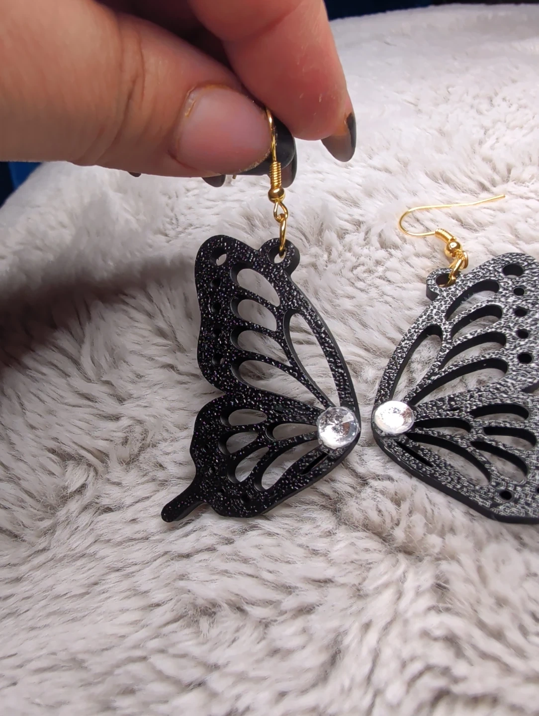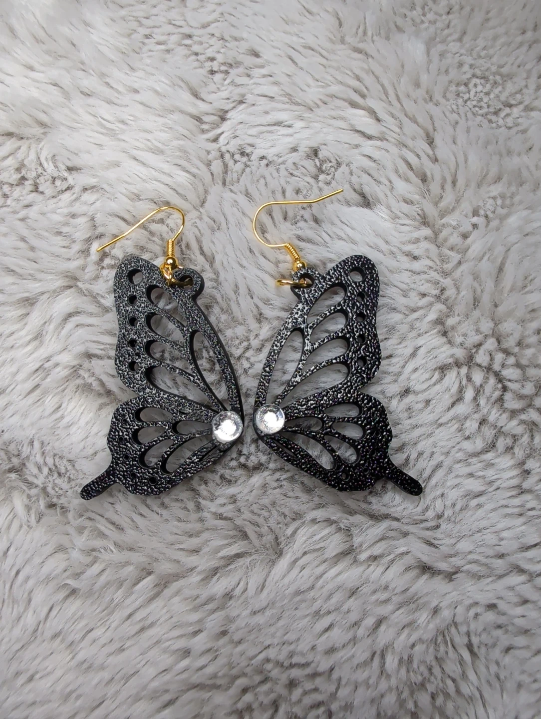 Custom Black Butterfly Earrings with Rhinestones