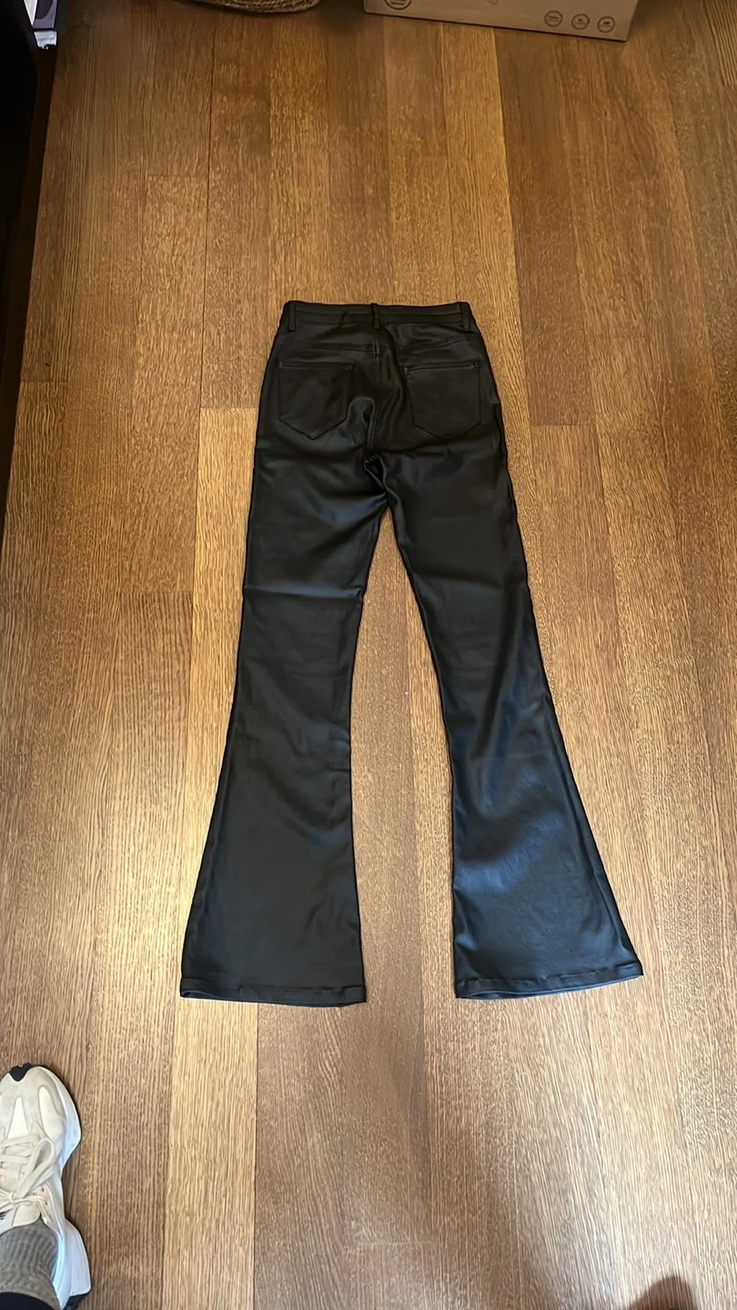 Black faux leather flare pants from Edikted . Size Small (fits like a 2) High-waisted with a button and zip closure. Great condition