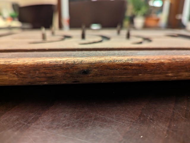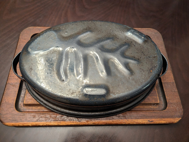 Beautiful solid wood cutting board for carving roasts, some patina but no cracks or splinters, clean and in great condition. 18” x 12” with six spikes and a drip trough, I’ve included a photo with a roasting pan for scale. Smoke free/ bug free home, available just about anytime for pickup in the St Boniface area of Winnipeg, if the ad is up it's still available. I also have some other antique/vintage serving ware and kitchen gadgets available, see my other ads. These are selling for $75 to $200 on ebay, asking only $50, cash or e-transfer only please.