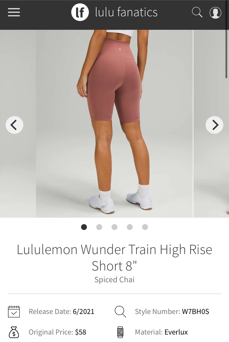 Lululemon Wunder Train High Rise Short 8" in Spiced Chai. Material: Everlux. Size 2.