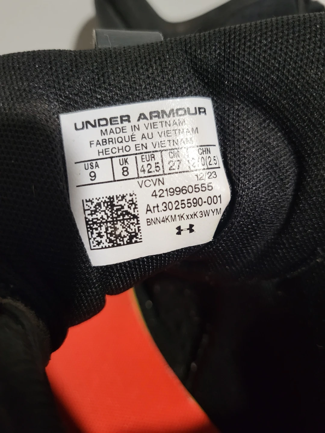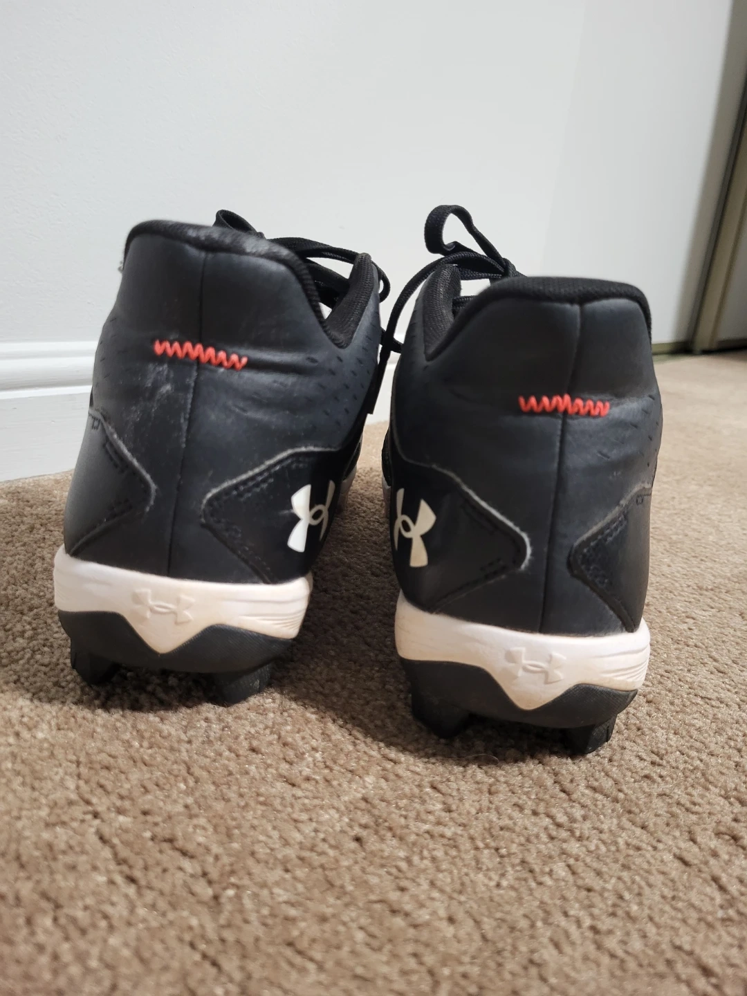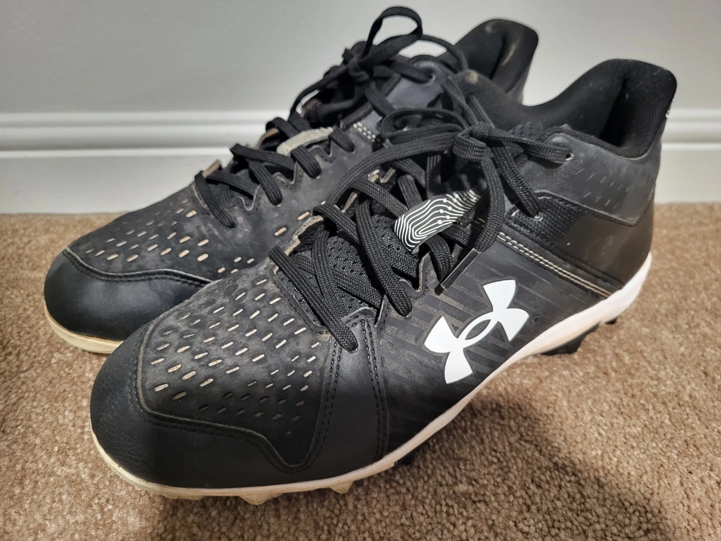 Black Under Armour baseball cleats. It's a size 9 US. These cleats are ready for the diamond!