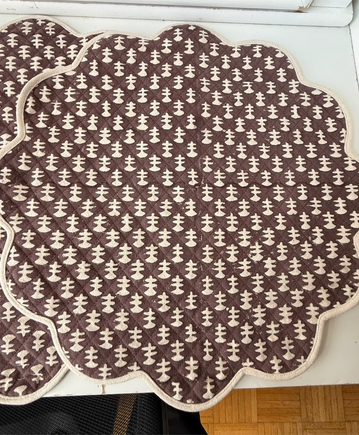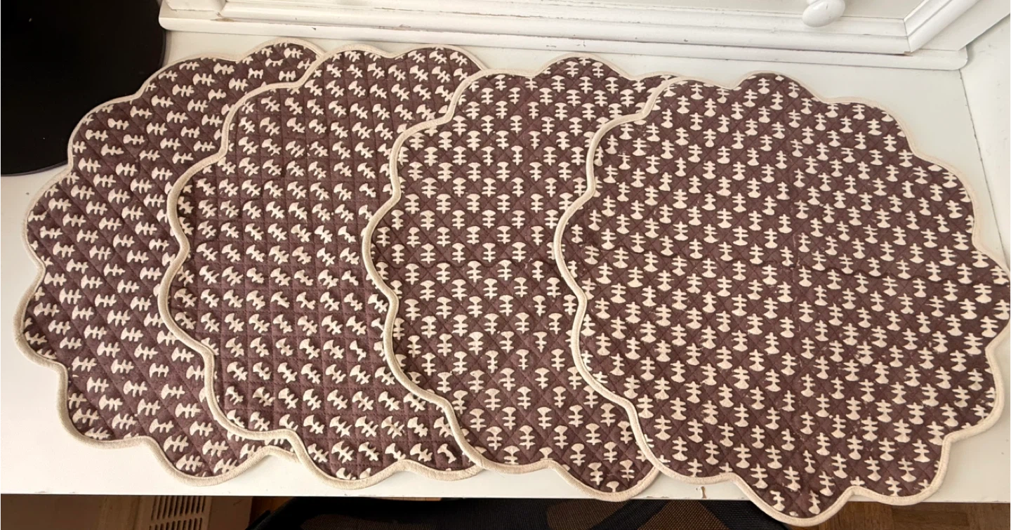 I'm selling a set of 4 placemats. They feature a unique brown and white pattern. Perfect for adding a touch of style to your dining table!