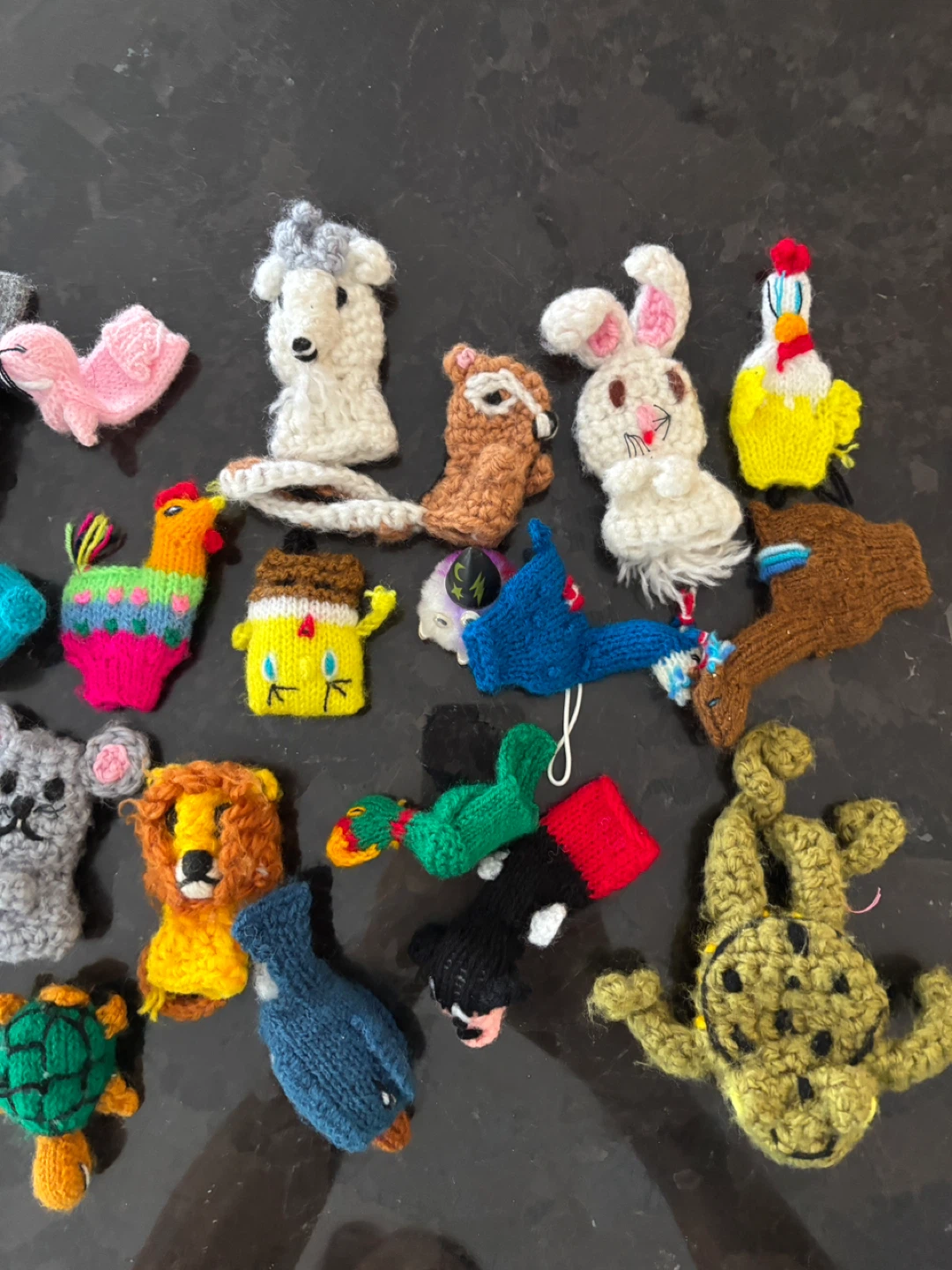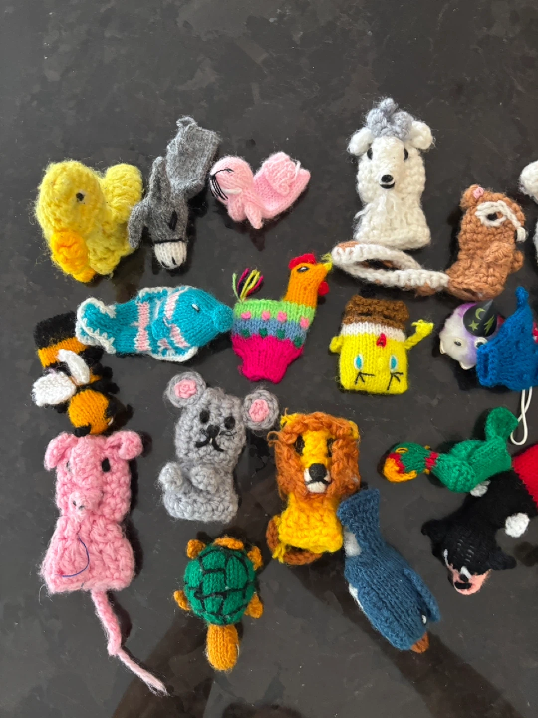 Bring storytelling and learning lot of hand-knitted finger puppets, some even from Peru! Each puppet is lovingly crafted using colorful yarn.