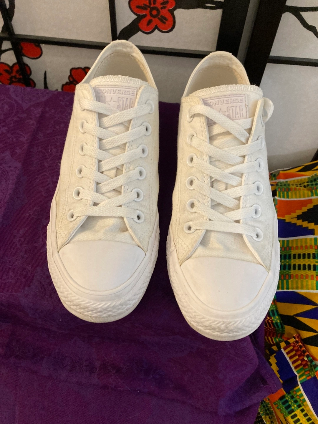 Selling a pair of white Converse All Star low top sneakers! They're in great condition and ready for a new home. These are a women's size 8 (US). The classic design goes with everything
