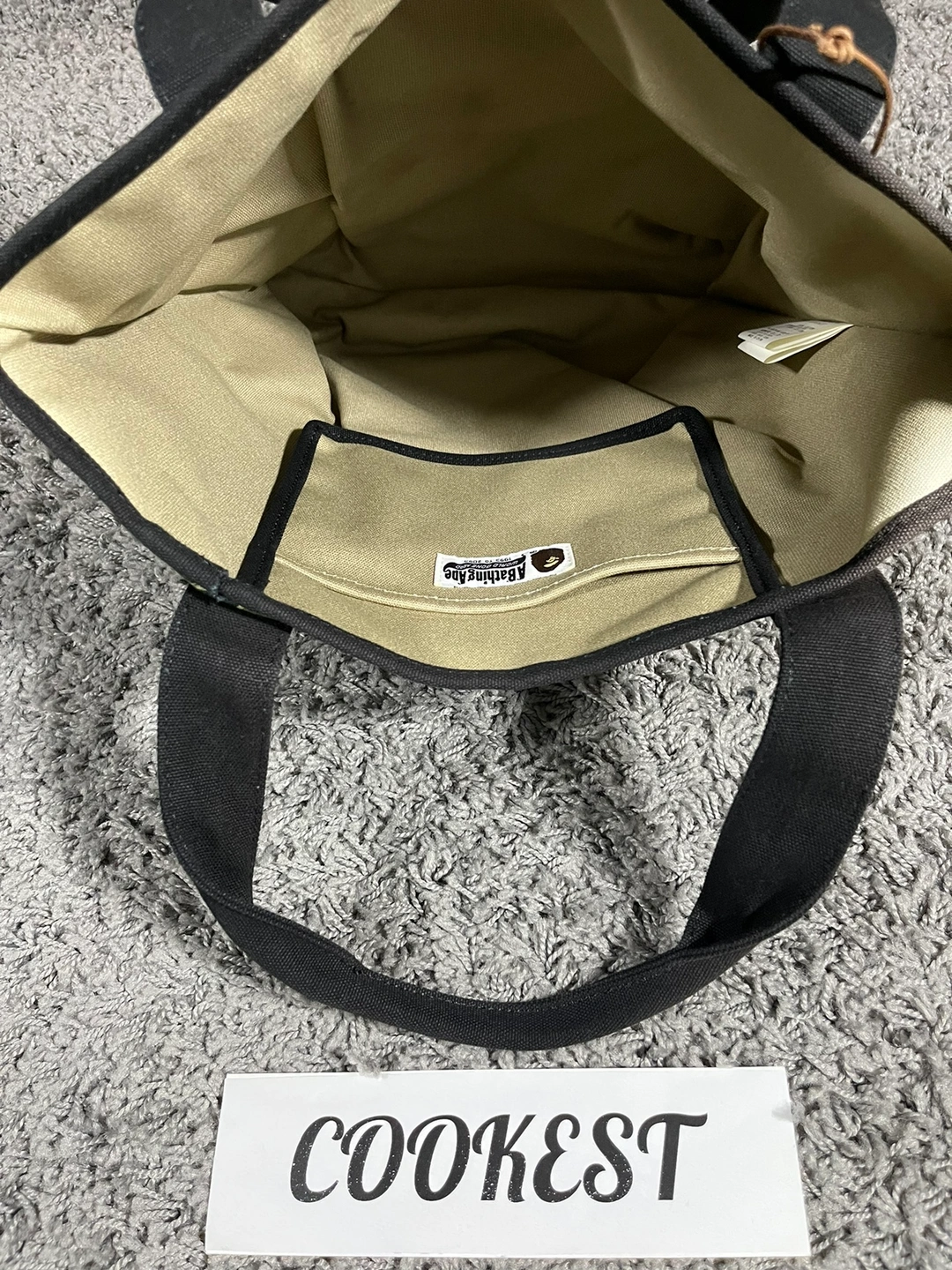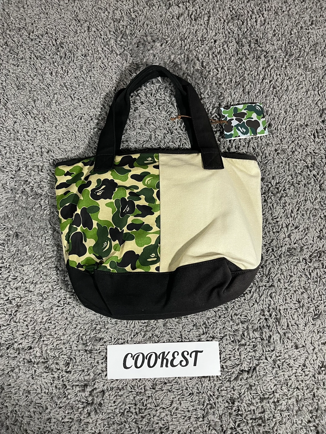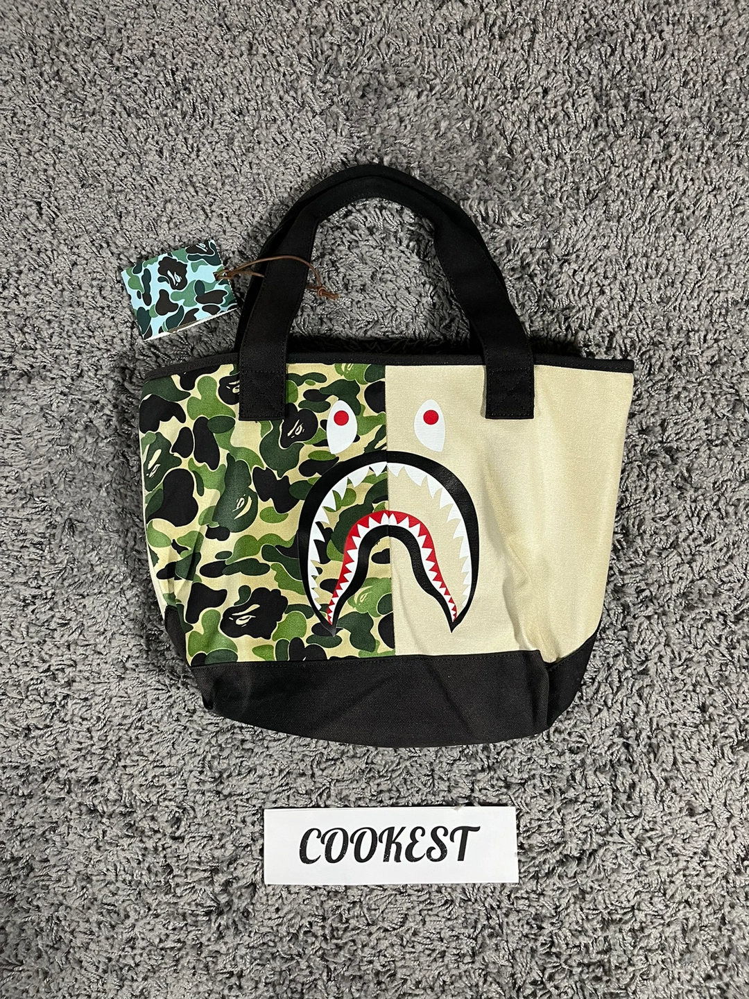 BAPE Half ABC Camo Shark Face Tote Bag Green Ivory