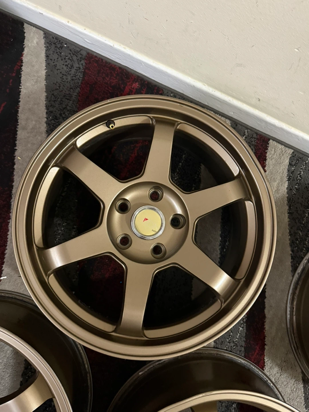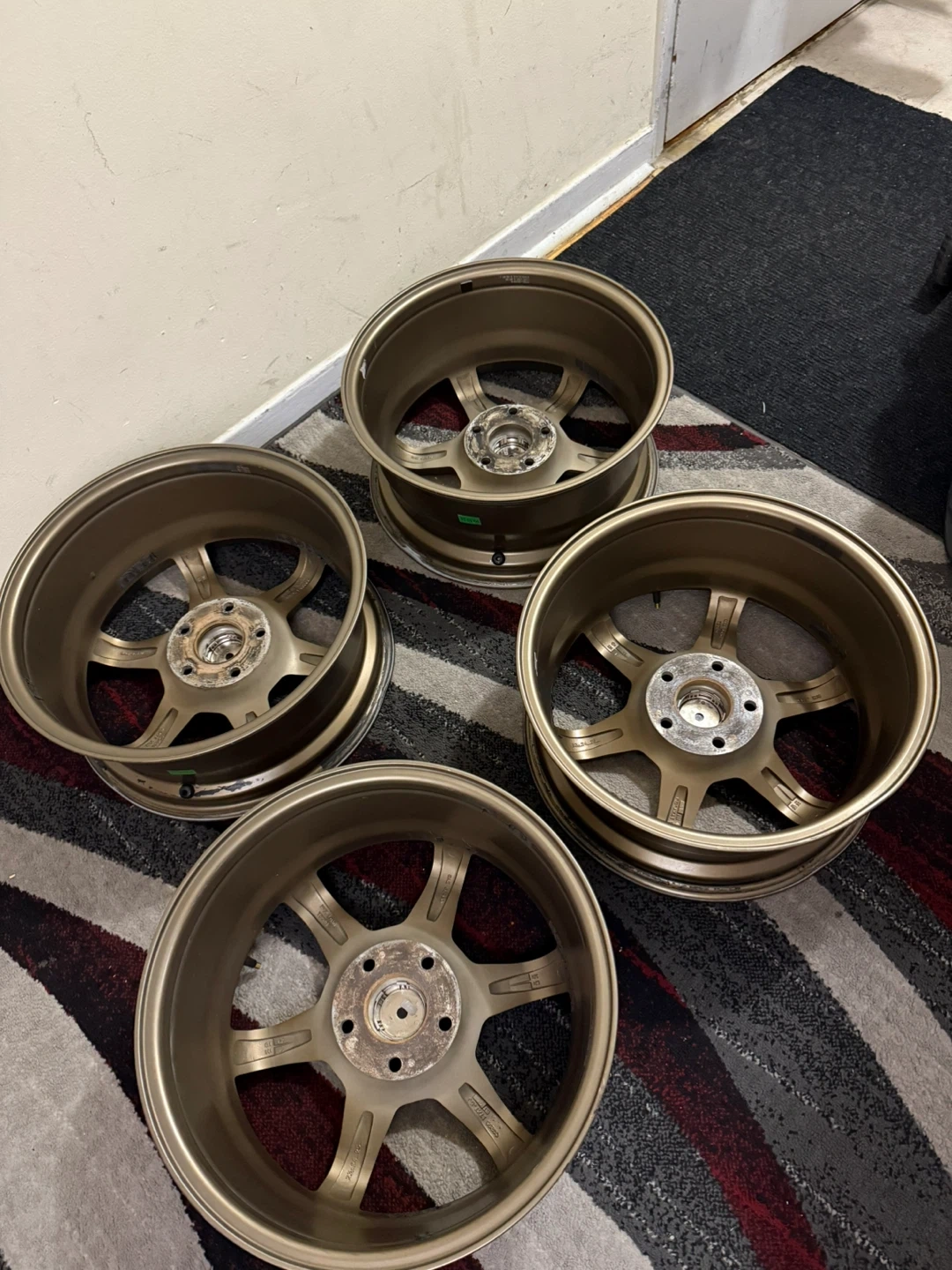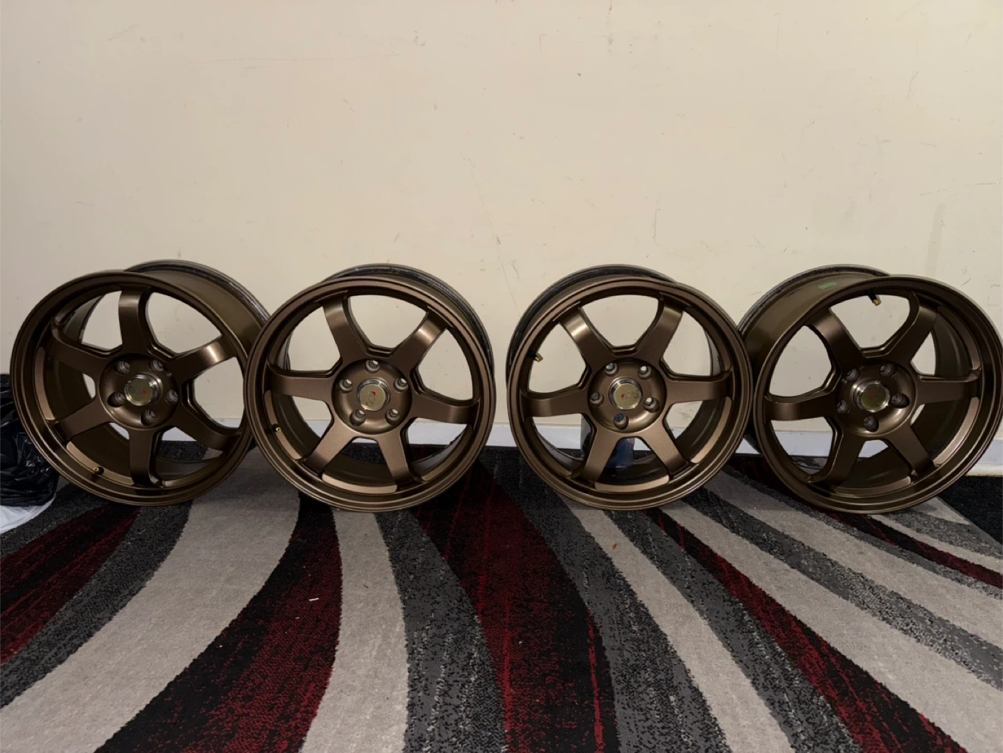 Selling used T37 size 17X7.5 bolt pattern (5x114). Still in good conditions. Has some bends on the side of some wheel as you see in photos. But its not really big issue .