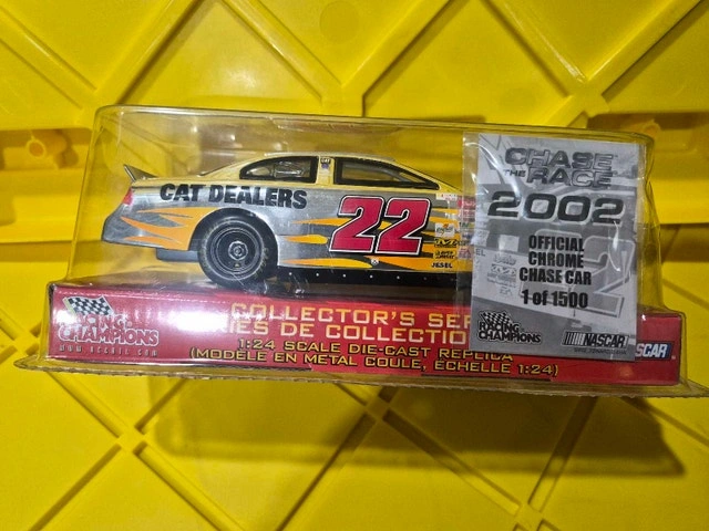 Own a piece of racing history with this 2002 Racing Champions Collector's Series 1:24 scale die-cast replica of Ward Burton's #22 'Cat Dealers' NASCAR race car! This limited edition, chrome Chase Car is number 1 of only 1500 produced, making it a rare find for any NASCAR enthusiast. It's a cool collectable that will bring back some memories. This model car is in new condition. Cash accepted. Cashless payment accepted.