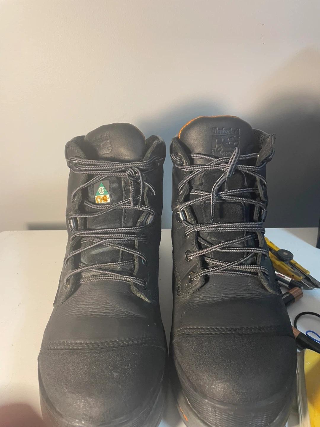 Selling a pair of Timberland PRO men's composite toe, composite plate, Pro Endurance HD waterproof leather 6-inch work boots in black. They are size 10W. The original price was $269.99. Perfect for any job site! Send dw nw